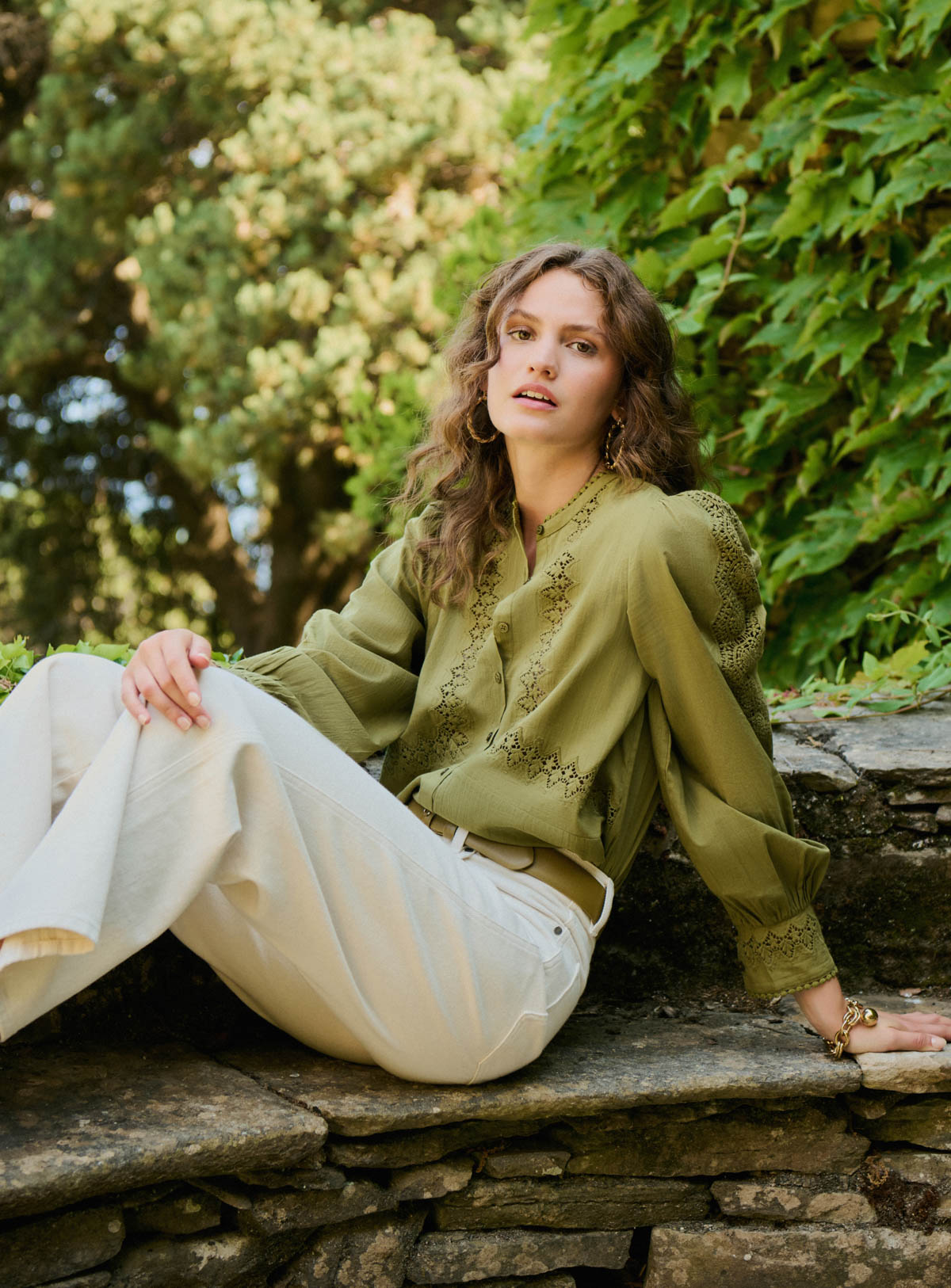 Why we love it: Its soft color subtly enhanced with delicate embroidery makes it an easy-to-wear piece that stands out from the crowd. Paired with our PAROS pants and our MAEVA sleeveless vest, it creates an elegant and relaxed look that easily takes you from the office to everyday life.