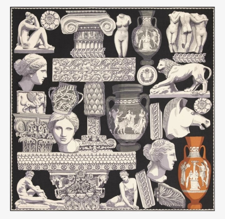 Inoui Editions for the Louvre: a collaboration featuring three exclusive drawings for squares, scarves and leather goods.