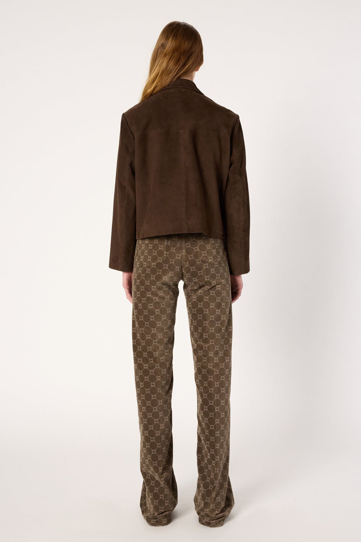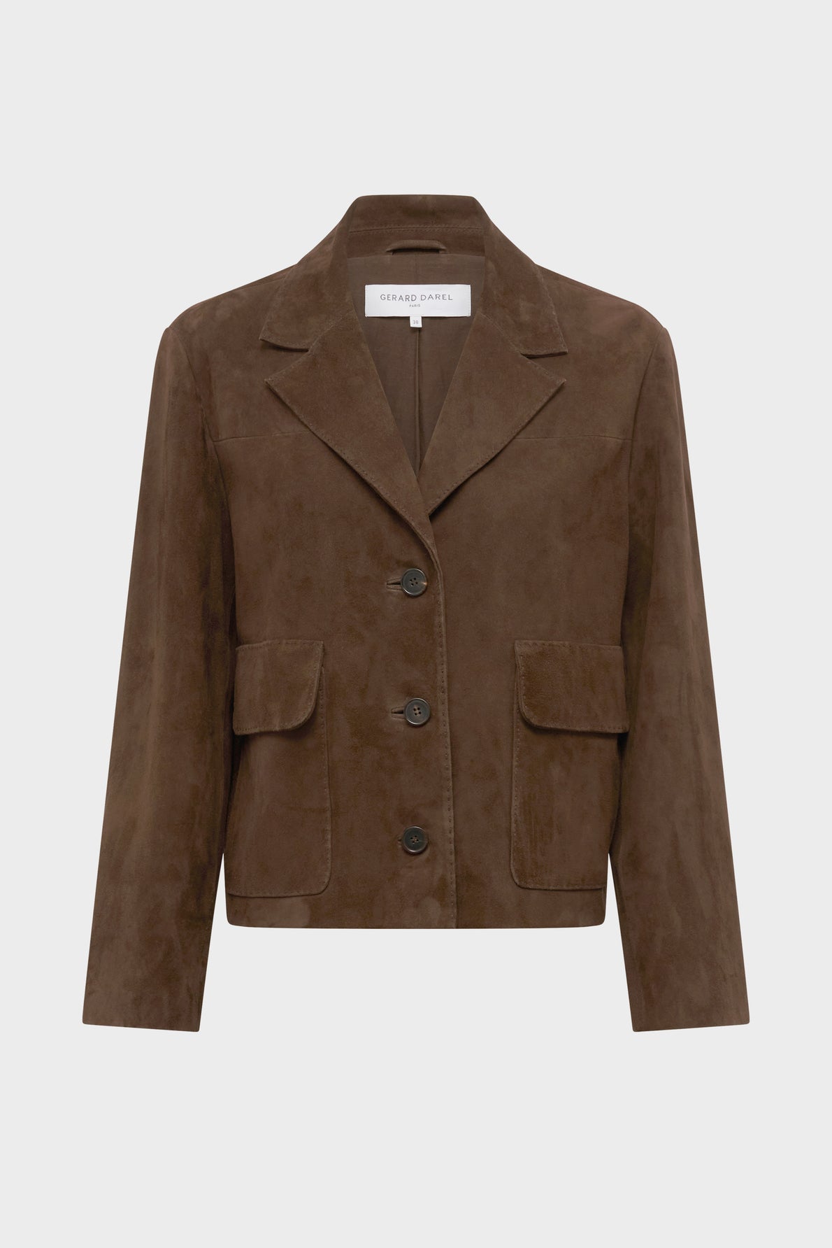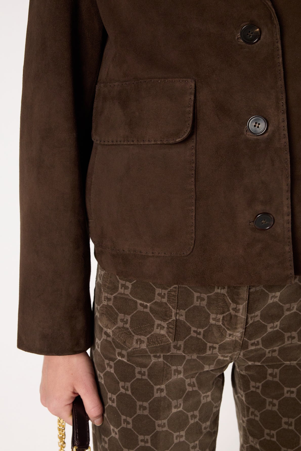 SUIT-STYLE JACKET IN SOFT-FEEL, VELVETY BROWN SUEDE. 100% GOATSKIN.