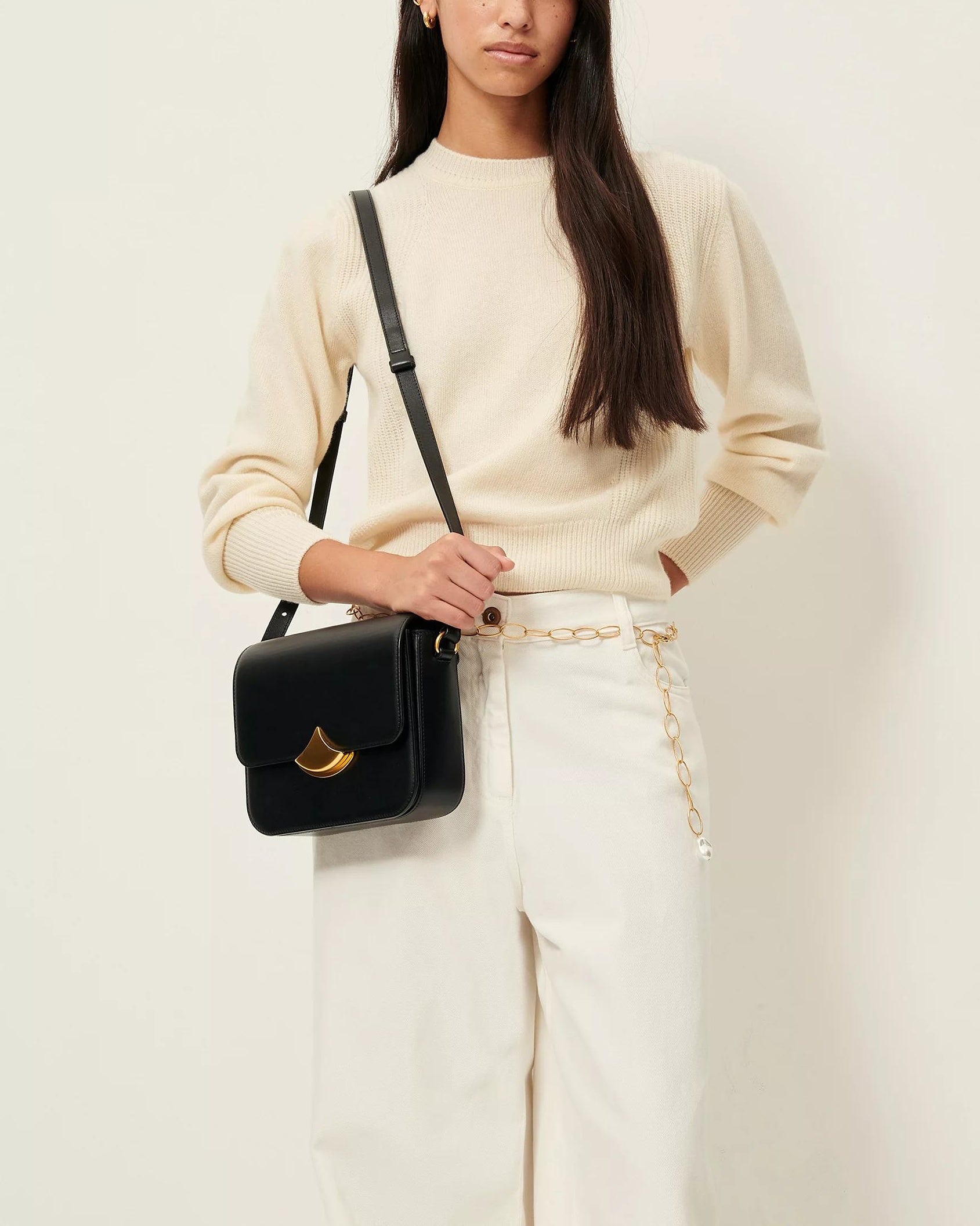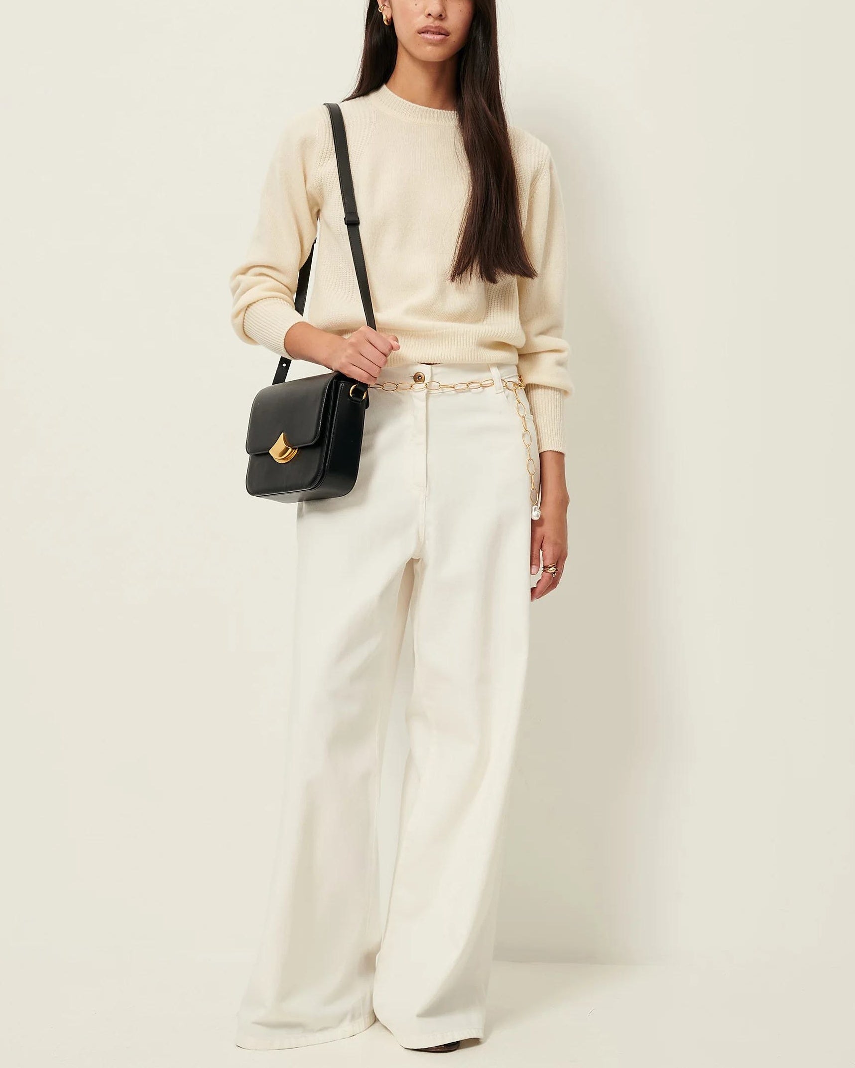Close-fitting cropped jumper in stocking stitch knit with half-cardigan ribbing details at armholes, knitted in Italy.