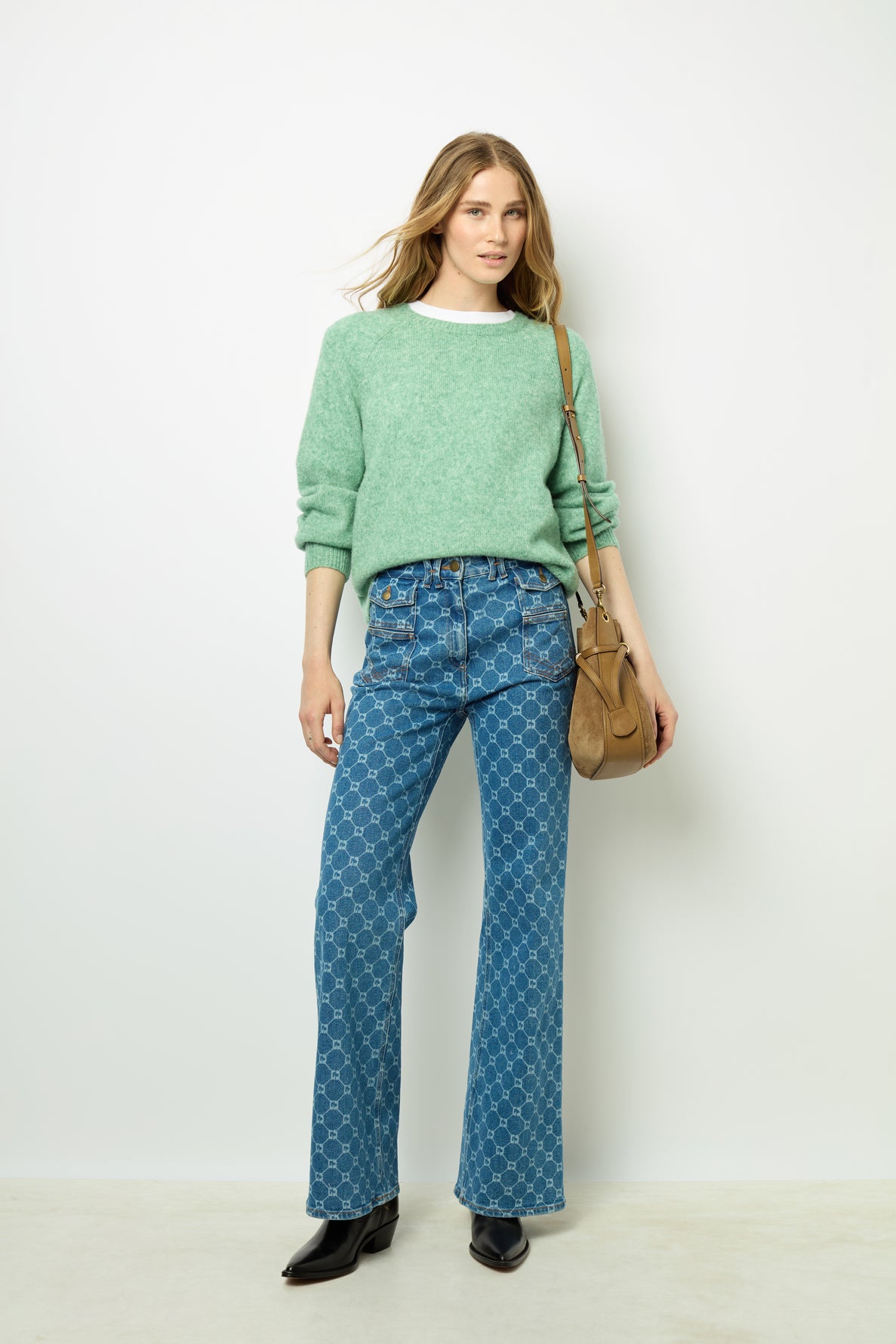 THE REFINED JEWELLERY ADDS BRIGHT TOUCHES AND THE COMBINATION OF SILKY SUEDE LEATHER AND SMOOTH LEATHER GIVES A LUXURIOUS TEXTURE.