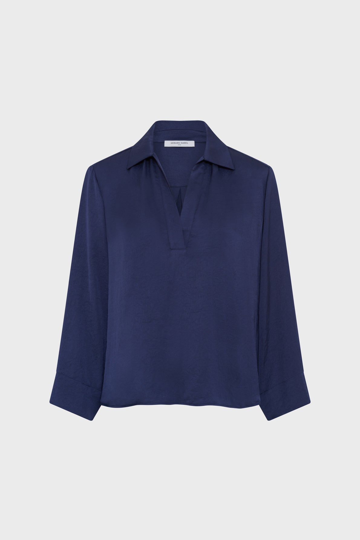 LOOSE, FLUID, AND WITH A SATIN FEEL, THE ALINA SHIRT IS THE PERFECT EMBODIMENT OF EFFORTLESS CHIC. IT IS OFFERED IN A DEEP MIDNIGHT BLUE. TO BE WORN WITH THE MATCHING SKIRT AND A LEATHER BELT FOR A BOHEMIAN AND SOPHISTICATED LOOK.