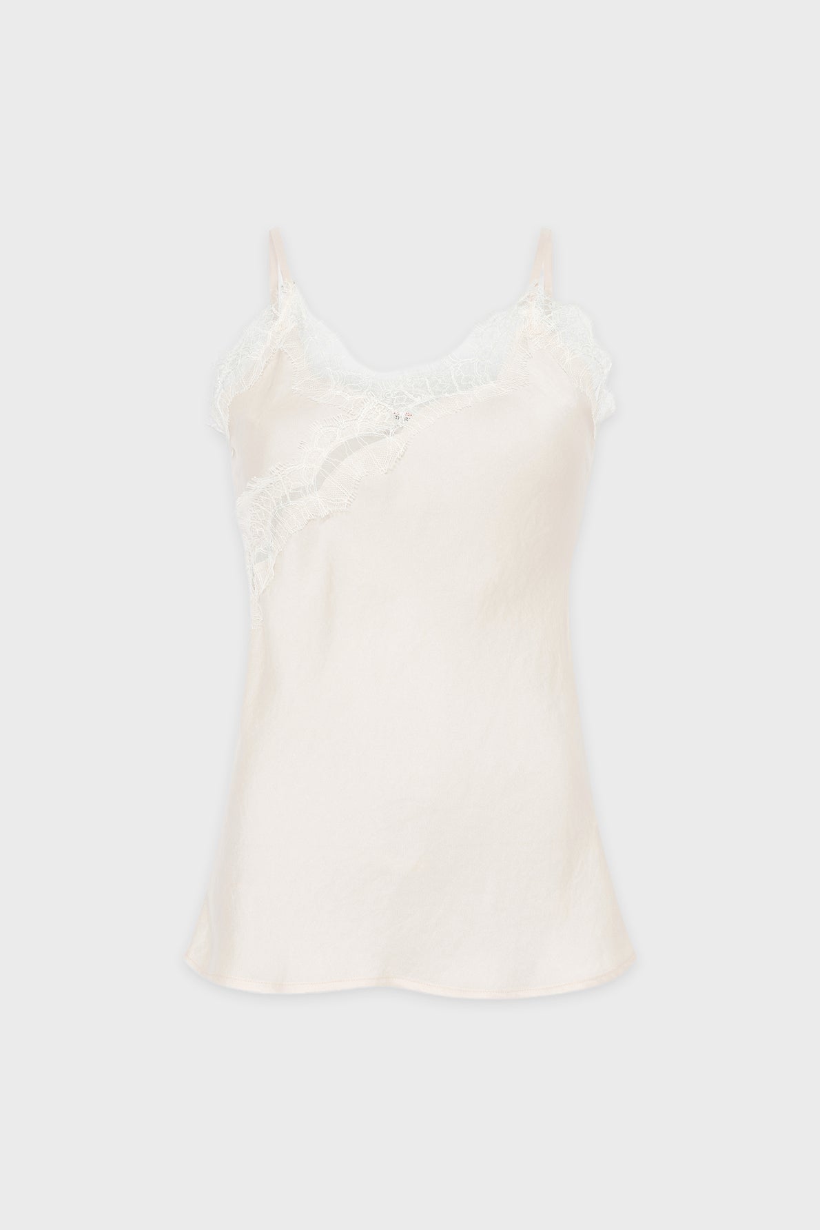 CHIC LINGERIE SPIRIT FOR THE ECRU ALISON TOP. CRAFTED IN SATIN AND ADORNED WITH LACE, IT WILL ADD A GLAMOROUS TOUCH TO OUTFITS.