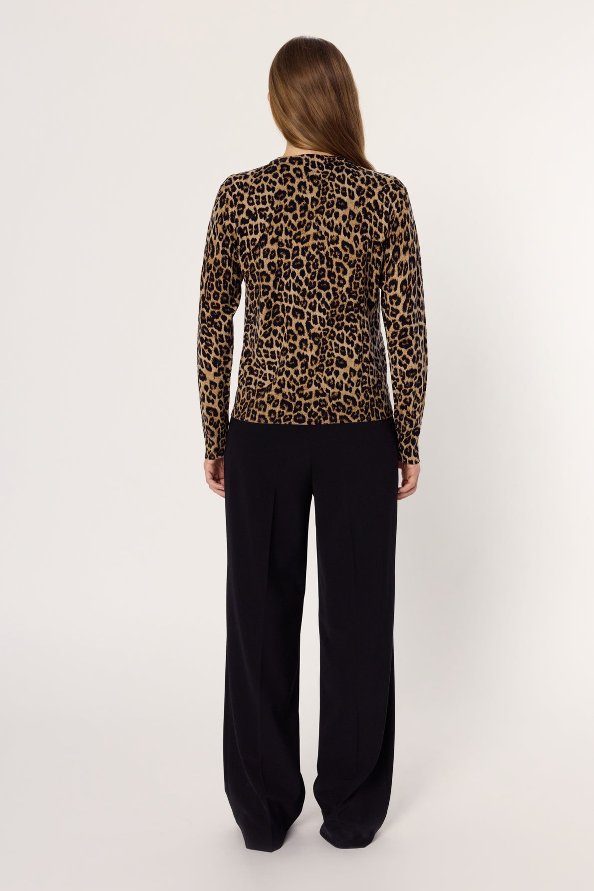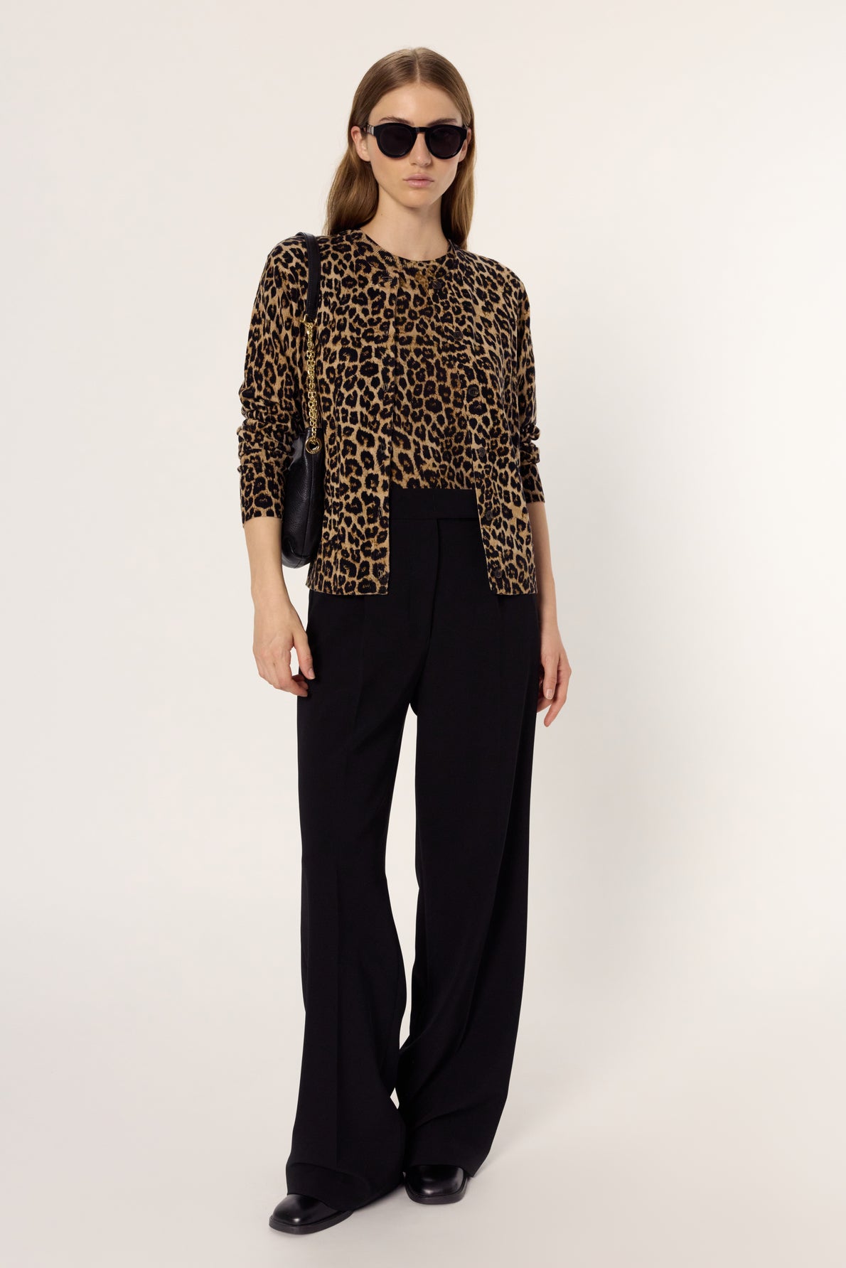 LEOPARD CARDIGAN IN VERY FINE MERINO WOOL FOR A CHIC TIMELESS LOOK. 100% WOOL.