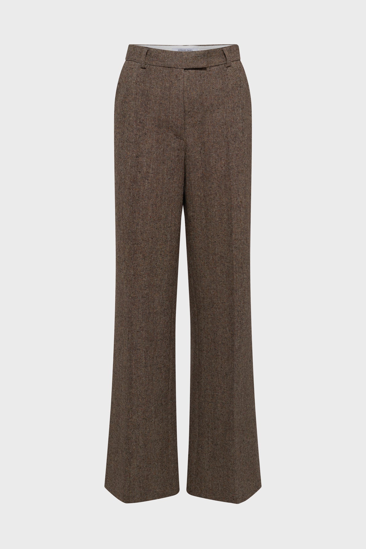 INSPIRED BY THE MASCULINE WARDROBE, THE MOTTLED PANTS ARE PRESENTED IN A FLARE VERSION THAT ELONGATES THE SILHOUETTE. SLIGHTLY FLARED AT THE BOTTOM, CRAFTED IN A WOOL BLEND WITH A MOTTLED APPEARANCE, THEY WILL PROVIDE BOTH A CHIC AND RELAXED LOOK. TO B