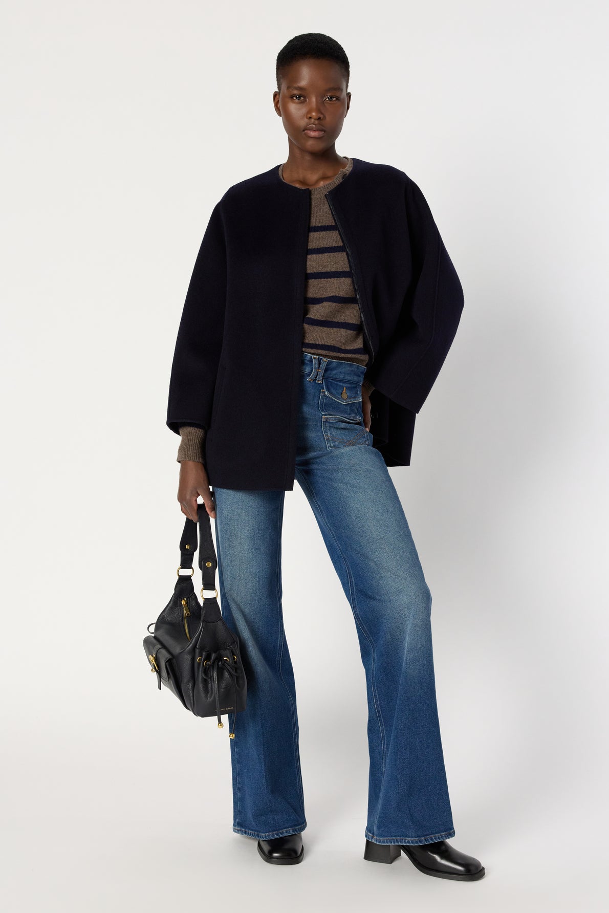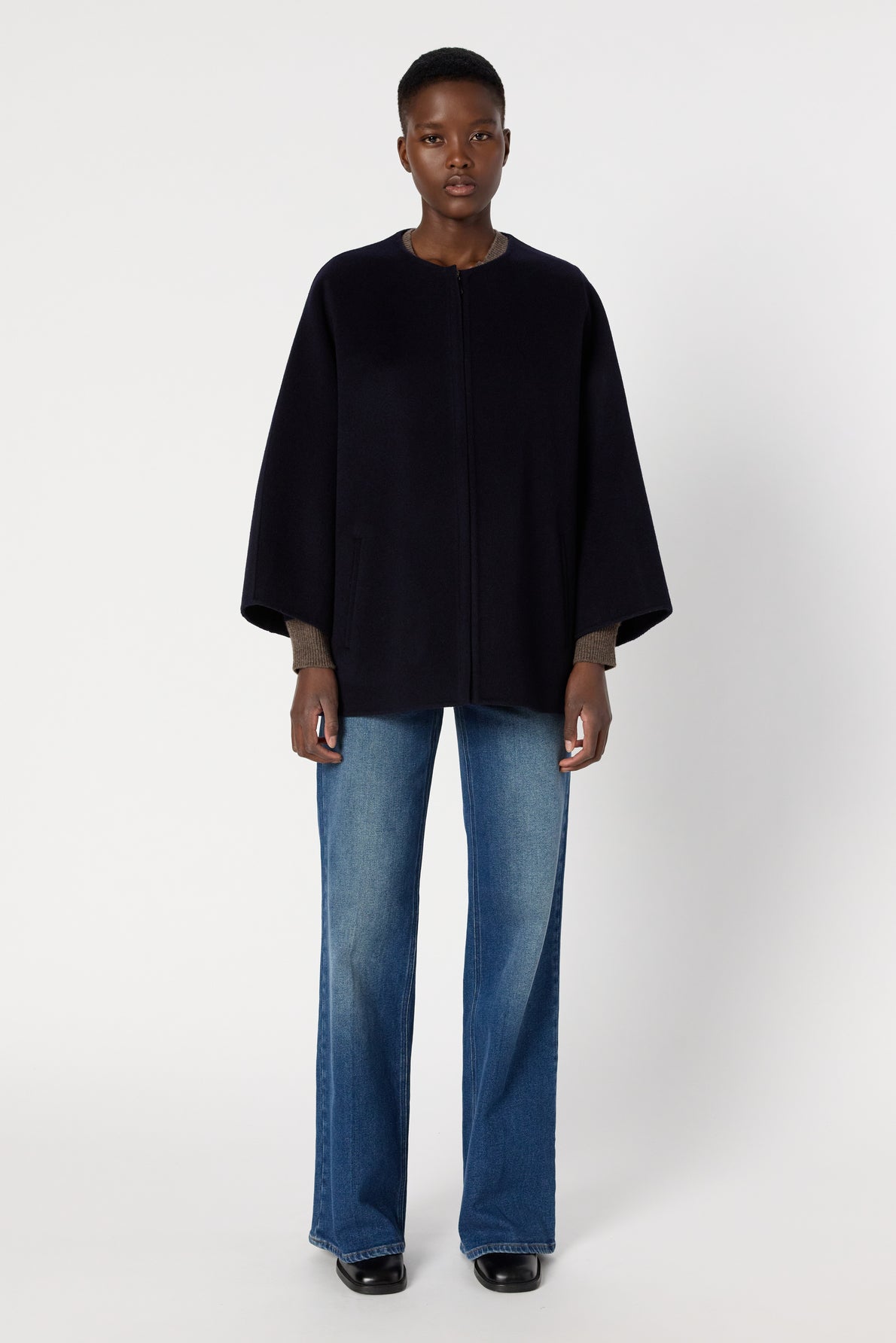 DOUBLE-SIDED WOOL COAT WITH SLEEK LINES FOR A CHIC, MODERN LOOK. MADE FROM 100% WOOL, PERFECT FOR EARLY SEASON LOOKS. TIMELESS NAVY BLUE COLOR.