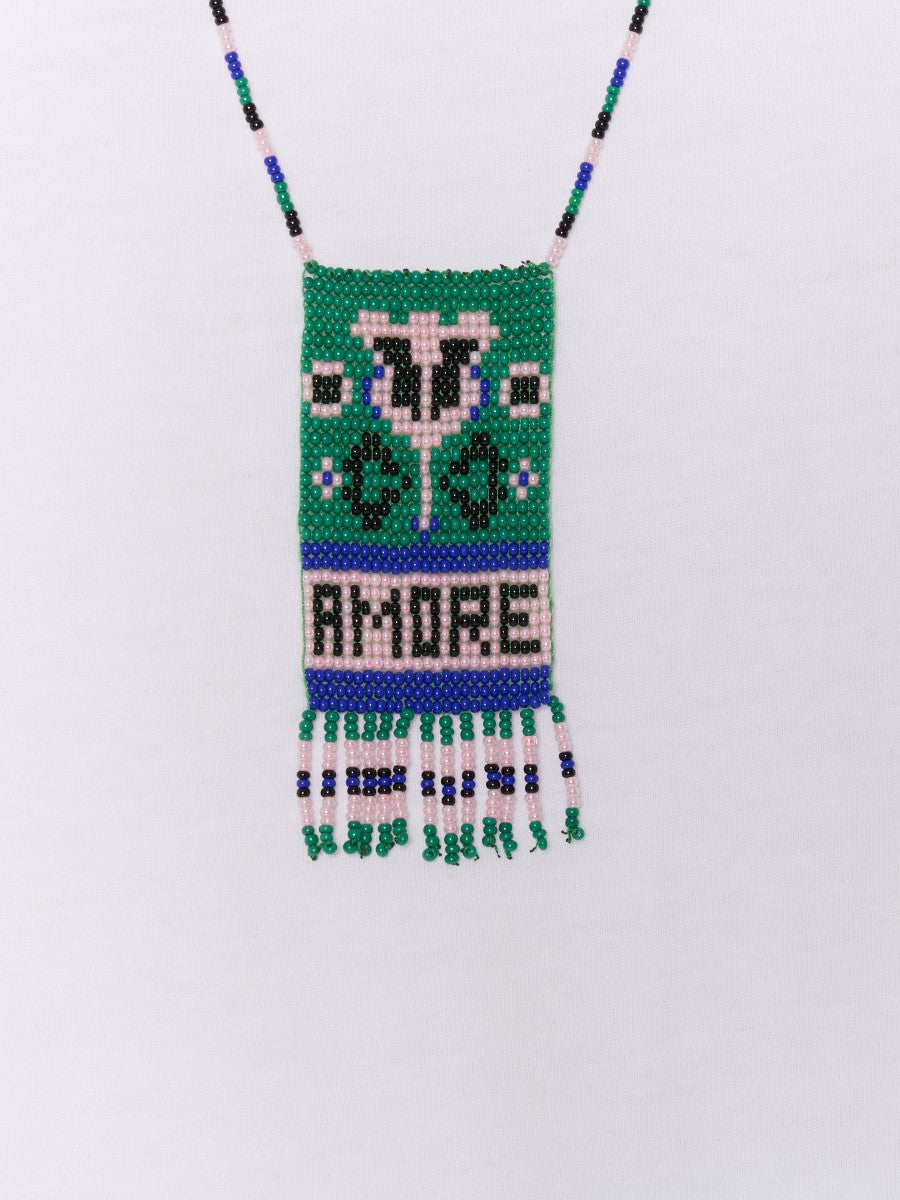 Round neck, short sleeves, removable pearl necklace with "AMORE VIDA" inscription