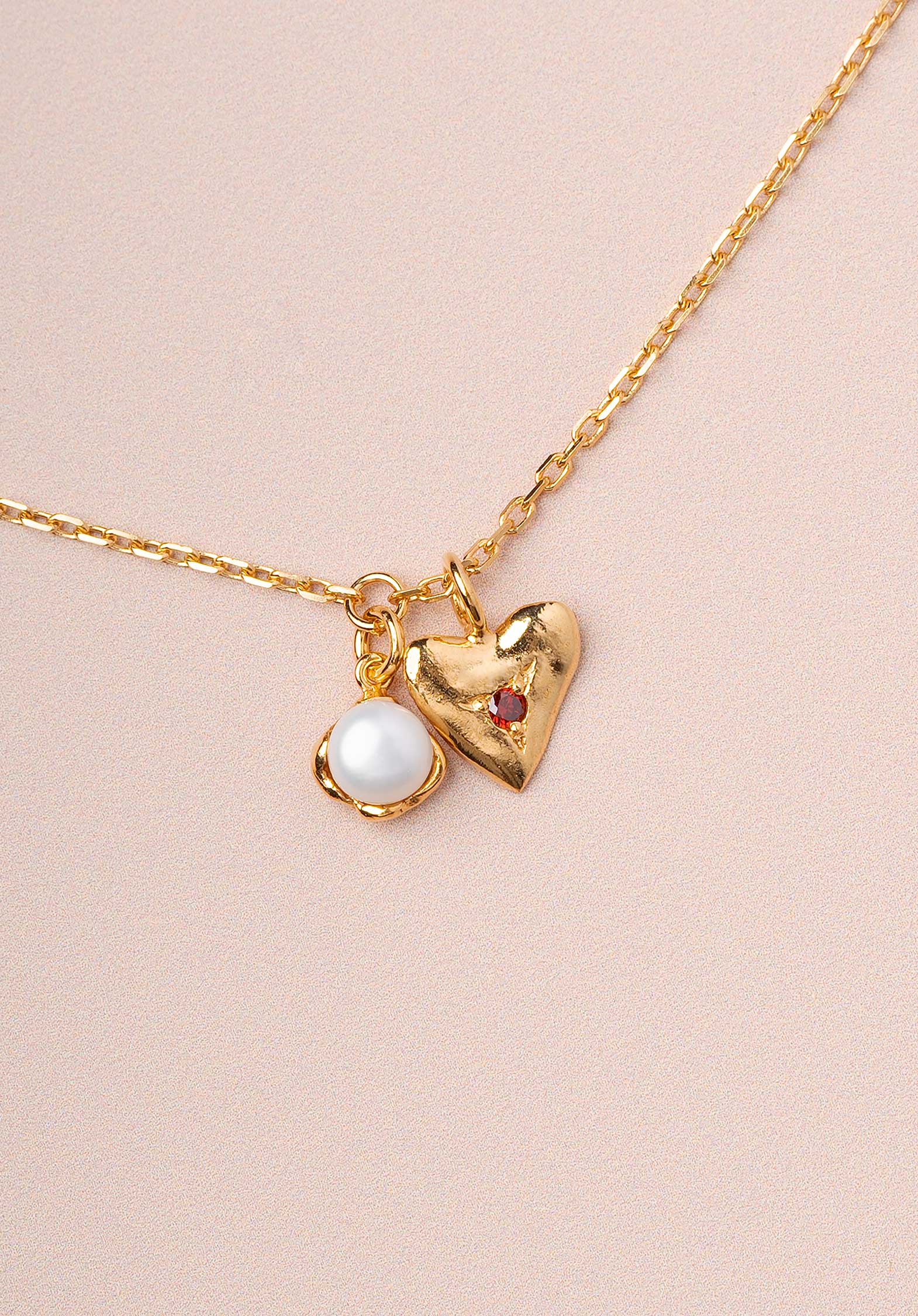 Material: 100% GOLD PLATED SILVER 925 HEART WITH SEMIPRECIOUS STONE GARNET & FGRESH WATER