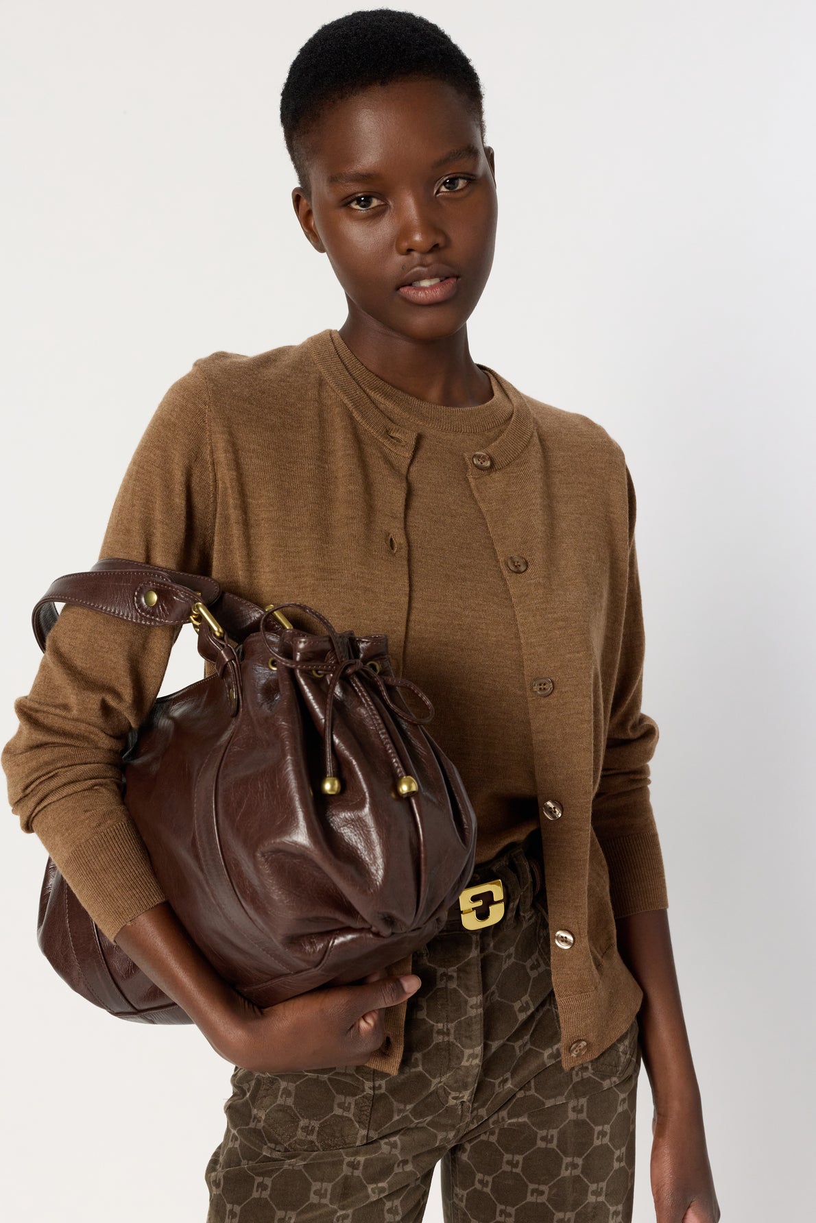 CARDIGAN MADE FROM 100% EXTRA FINE MERINO WOOL, TO WEAR NEXT TO THE SKIN OR OVER A TOP OR WITH THE MATCHING SWEATER IN A TWINSET. CLASSIC STYLE, CAMEL COLOR.
