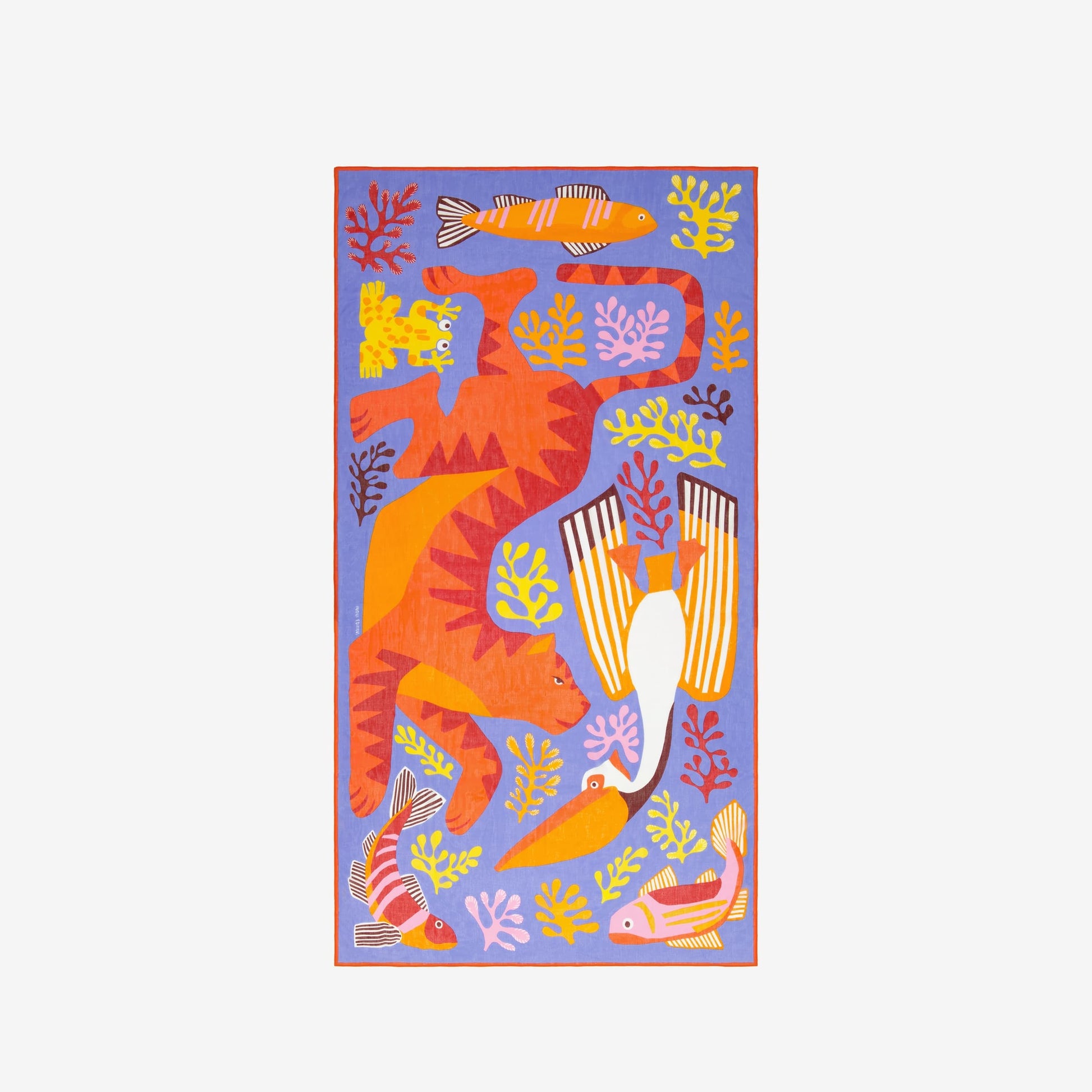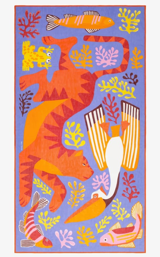 This line of screen-printed scarves comes in several sizes, depending on the design. Perfect for summer, the cotton scarf can be worn around the neck or as a sarong.