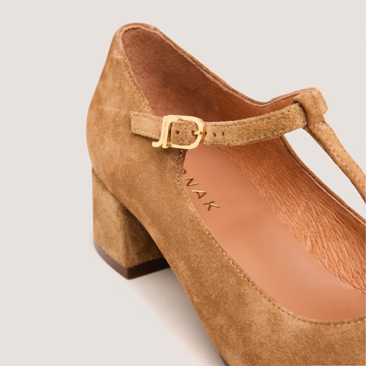 Inspired by the retro locker room, the Salomes Dalome in Cognac crust revisit a great classic with modernity.Their small square heel offers a comfortable daily approach, while their fine bridle gently highlights the ankle.The velvety leather brings a warm and elegant touch, perfect for mid-season looks.They are associated with 7/8th pants as well as a fluid dress for a feminine and refined look.