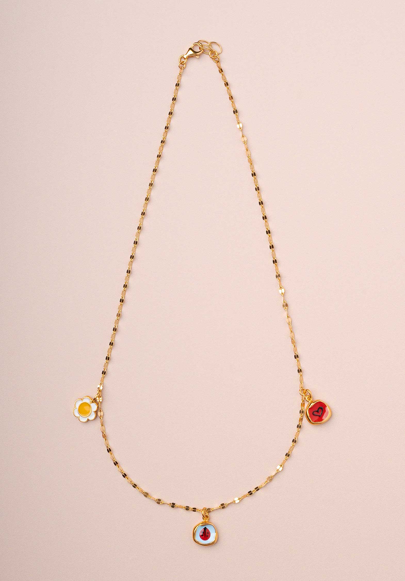 Material: 100% GOLD PLATED SILVER 925 CHAIN. GOLD PLATED BRASS ELEMENTS & ENAMEL
