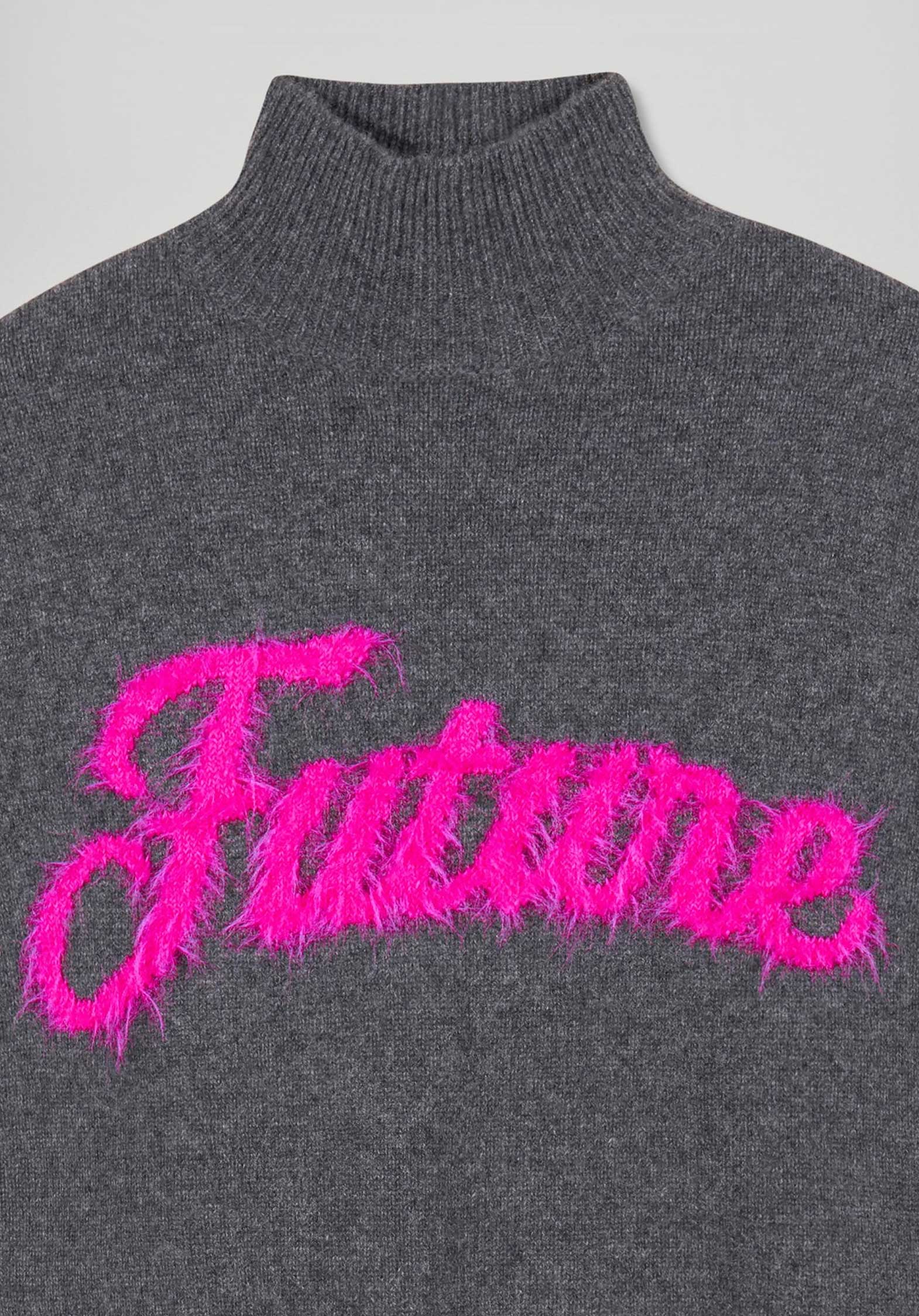 - Women's GCS certified 4-ply fluffy cashmere sweater - High collar - "Future" intarsia - Long sleeves - Regular fit - The Good Cashmere Standard (GCS) is an independent standard for more sustainable and responsible cashmere.It aims to improve the well-being of cashmere goats, working conditions