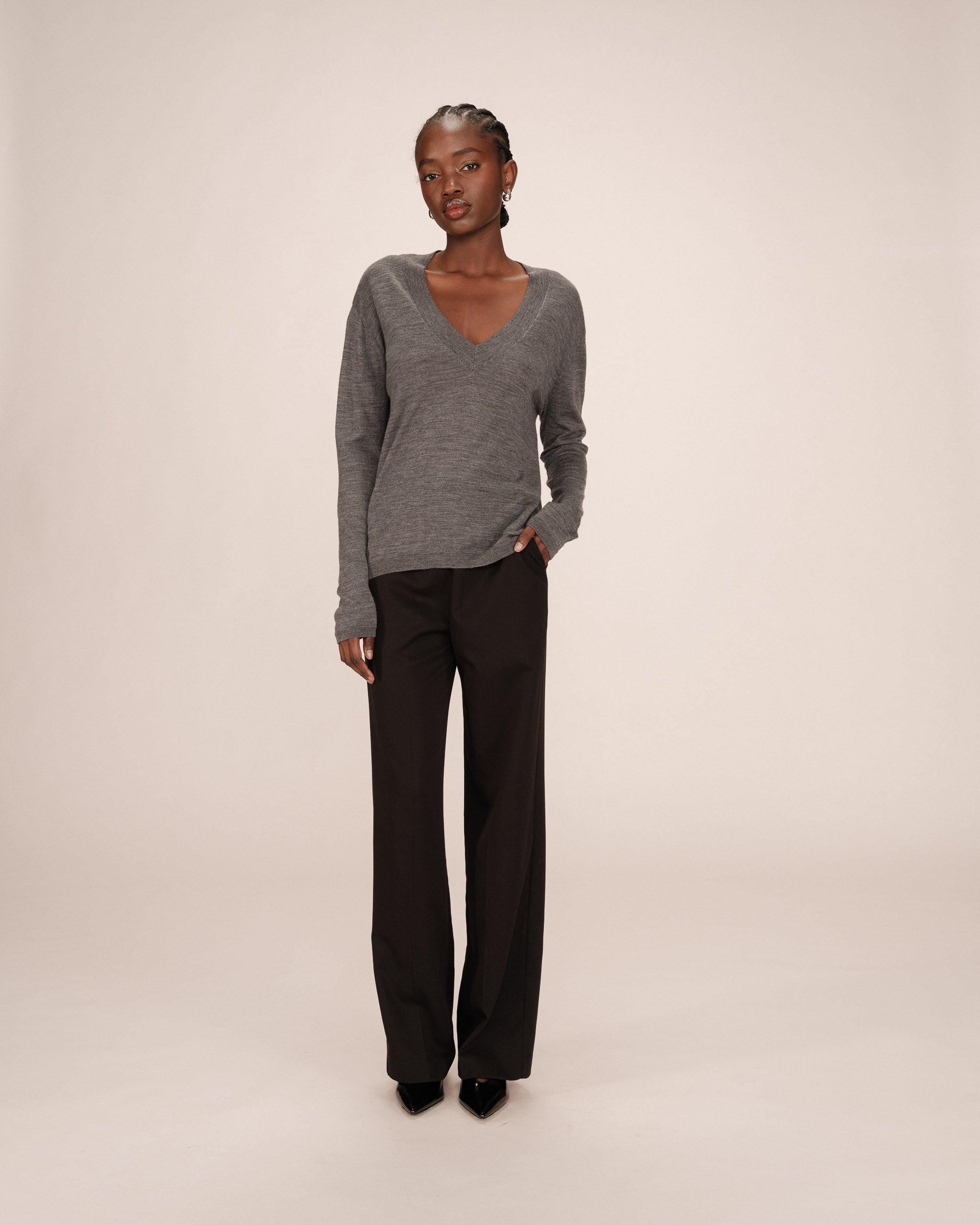 Made of merino wool, the Sabba long sleeve sweater is a soft and hot piece from the collection.The contrasting V neckline underlines the neckline and enhances the silhouette.The SABBA fine mesh sweater has a wide cut and long sleeves, and draws a relaxed and elegant look.