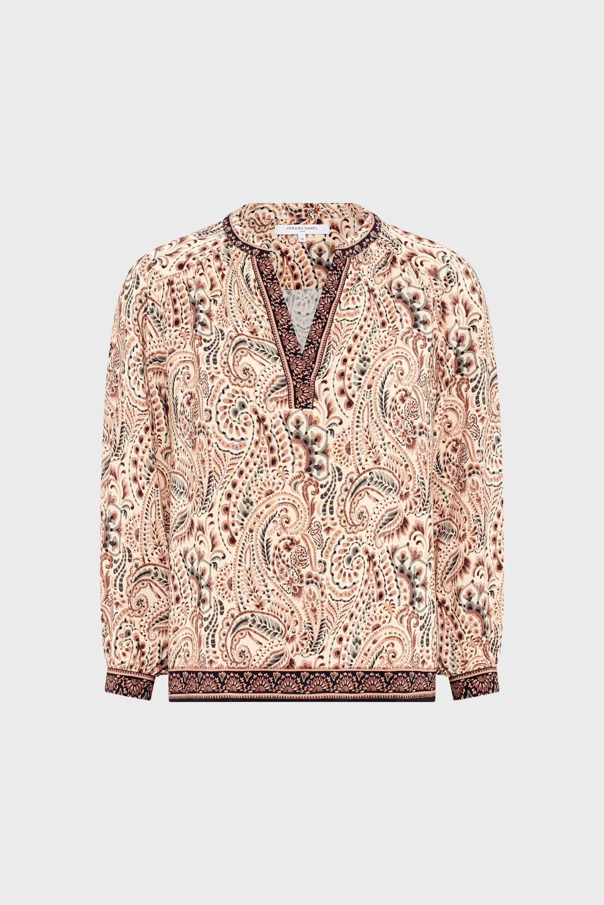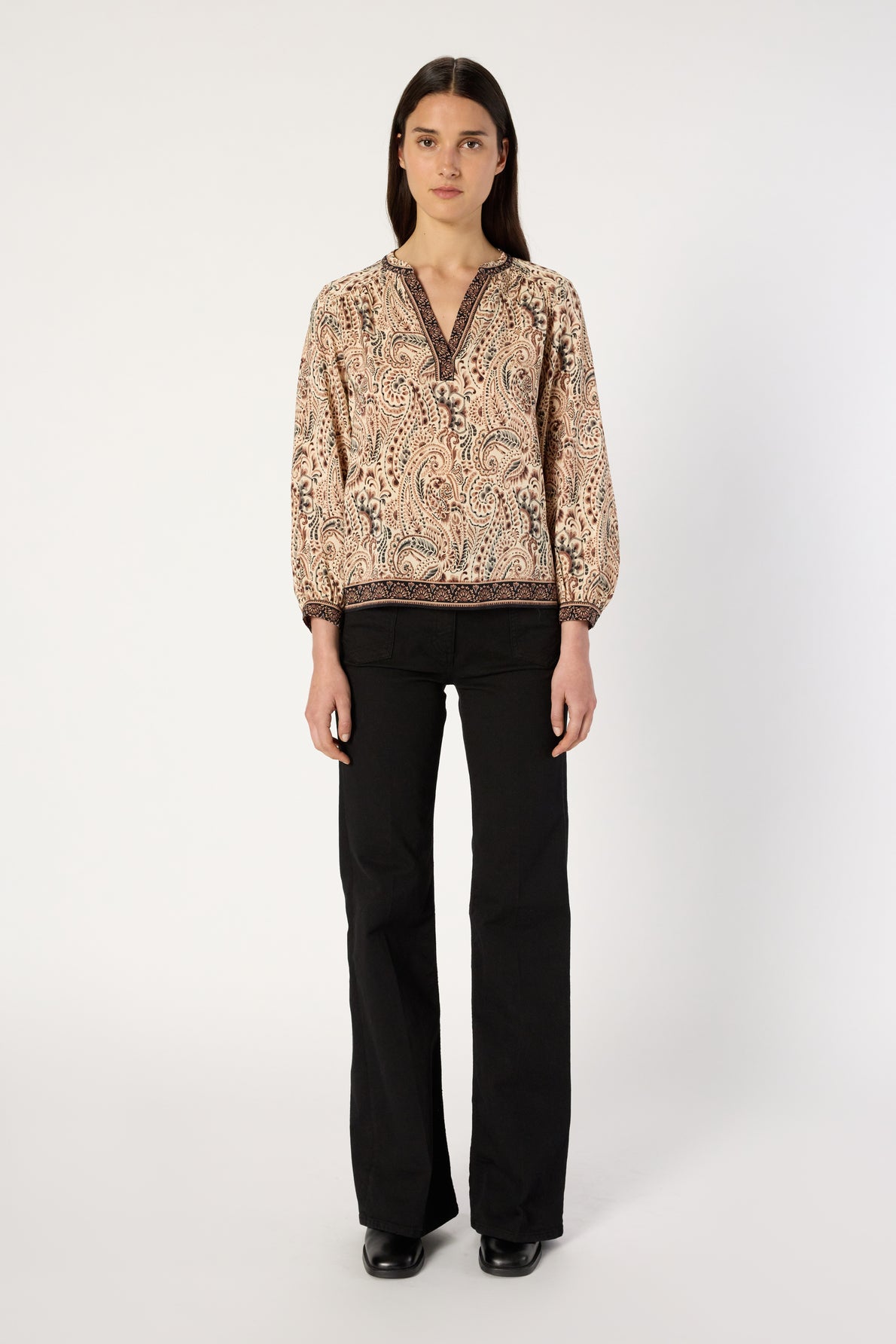 SOFT BLOUSE WITH WATERCOLOR STYLE FOLIAGE PRINT. IN SHADES OF BEIGE AND BROWN FOR TIMELESS STYLE.