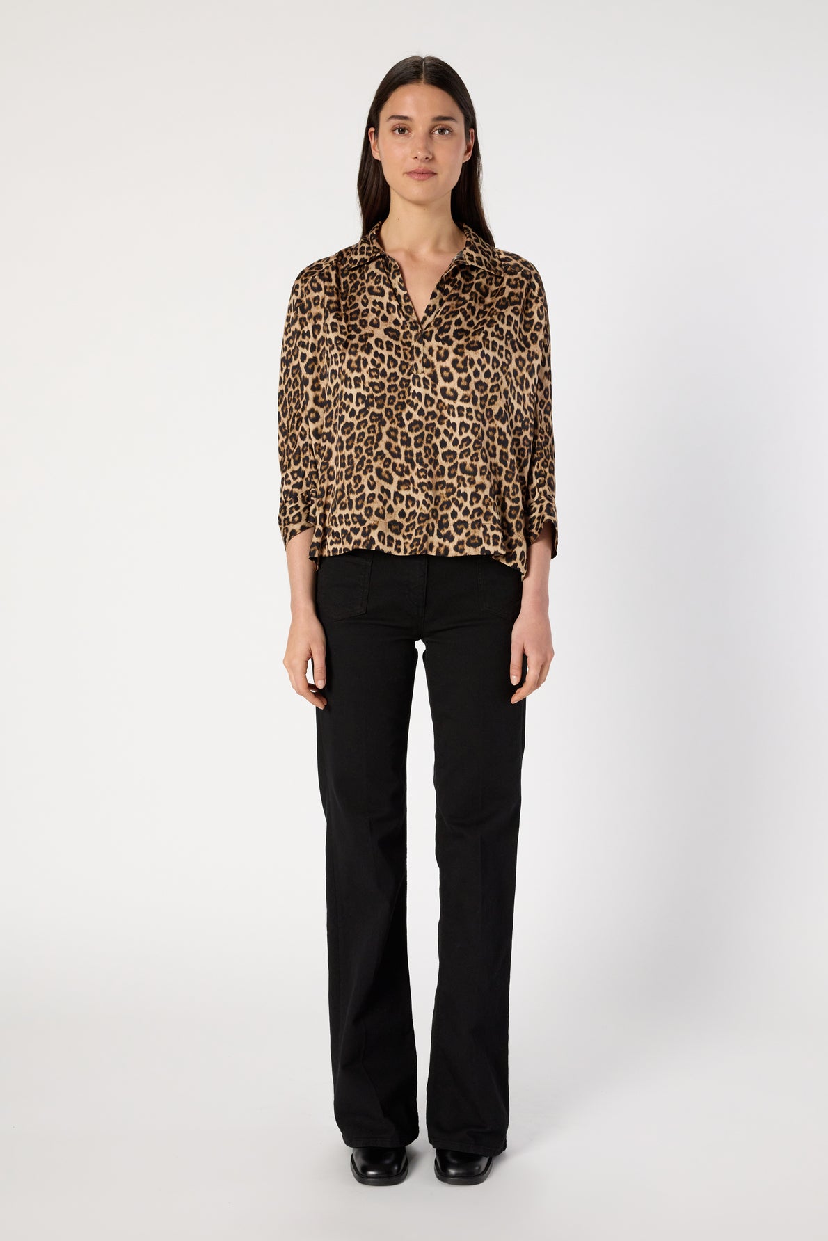 TIMELESS LEOPARD PRINT SHIRT IN A SOFT, SATINY FABRIC.