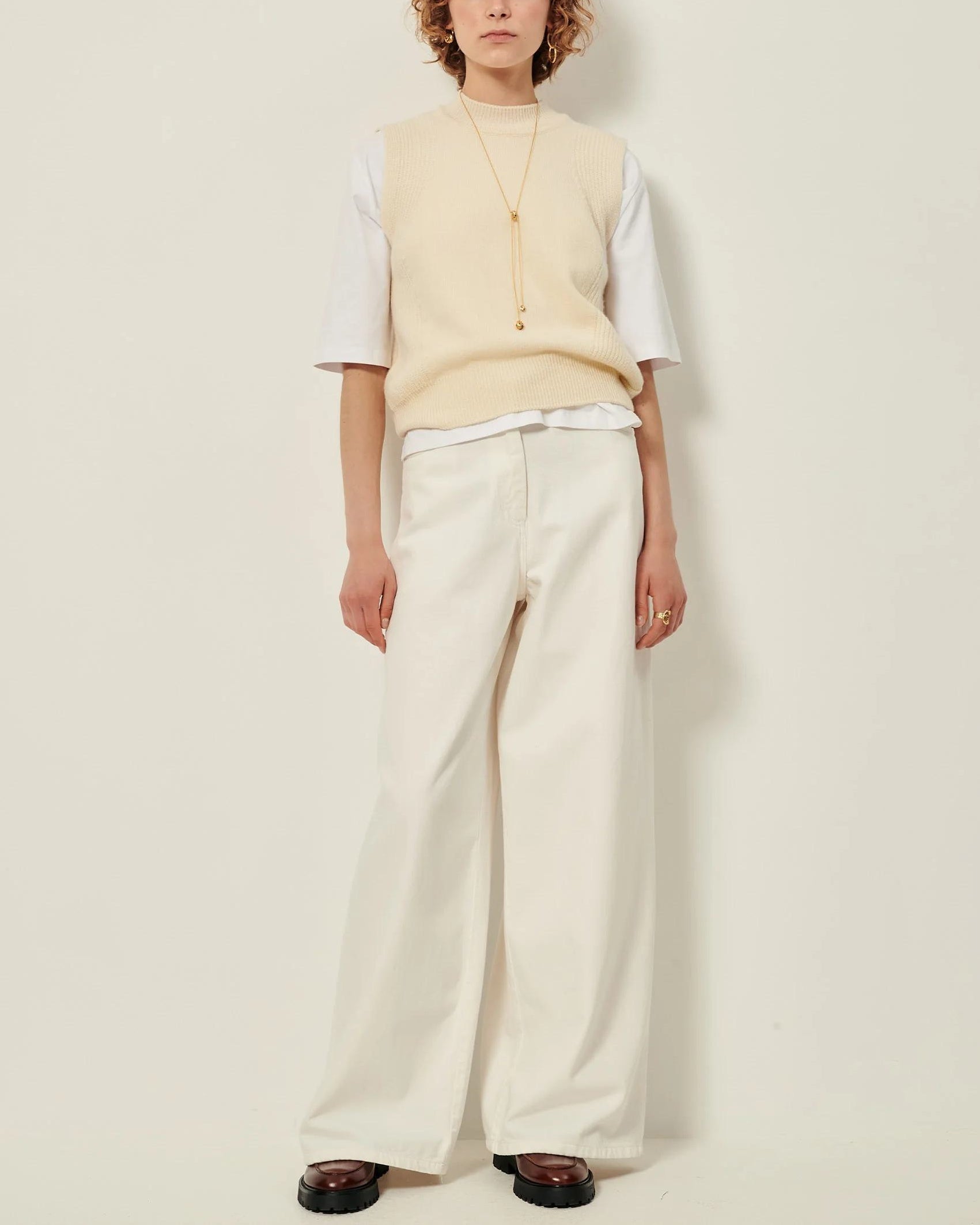 Short fitted sleeveless jumper in stocking stitch knit, knitted in Italy.