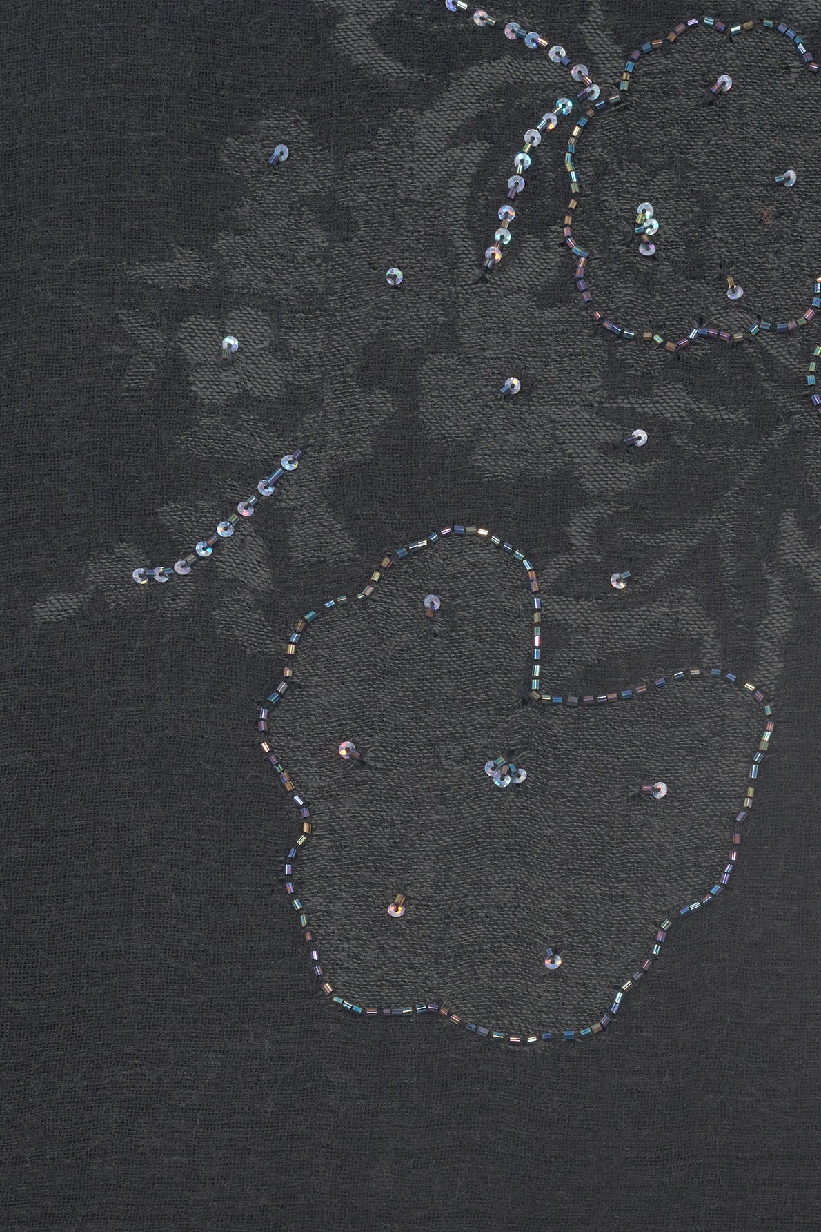 ROSETTA SCARF WITH LARGE BLACK FLOWERS EMBROIDERED WITH MULTICOLORED SEQUINS, FOR A TOUCH OF FANCY ELEGANCE. 100% WOOL.