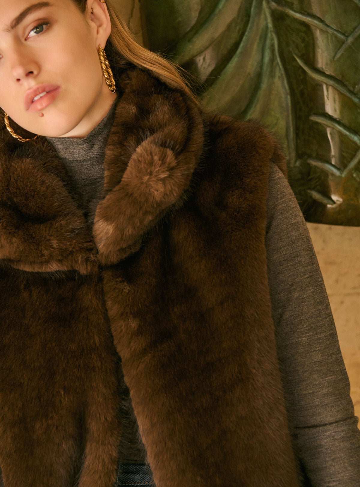 Why we love it: With its sleeveless cut and soft faux fur, the OZAN jacket is the ultimate cozy-chic piece. Easy to layer over a fine knit or shirt, it instantly adds warmth and style to your looks.