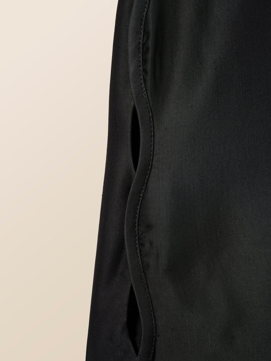 Satin pantsWide cutOpening braid on the sidesPiped back pocket on the back