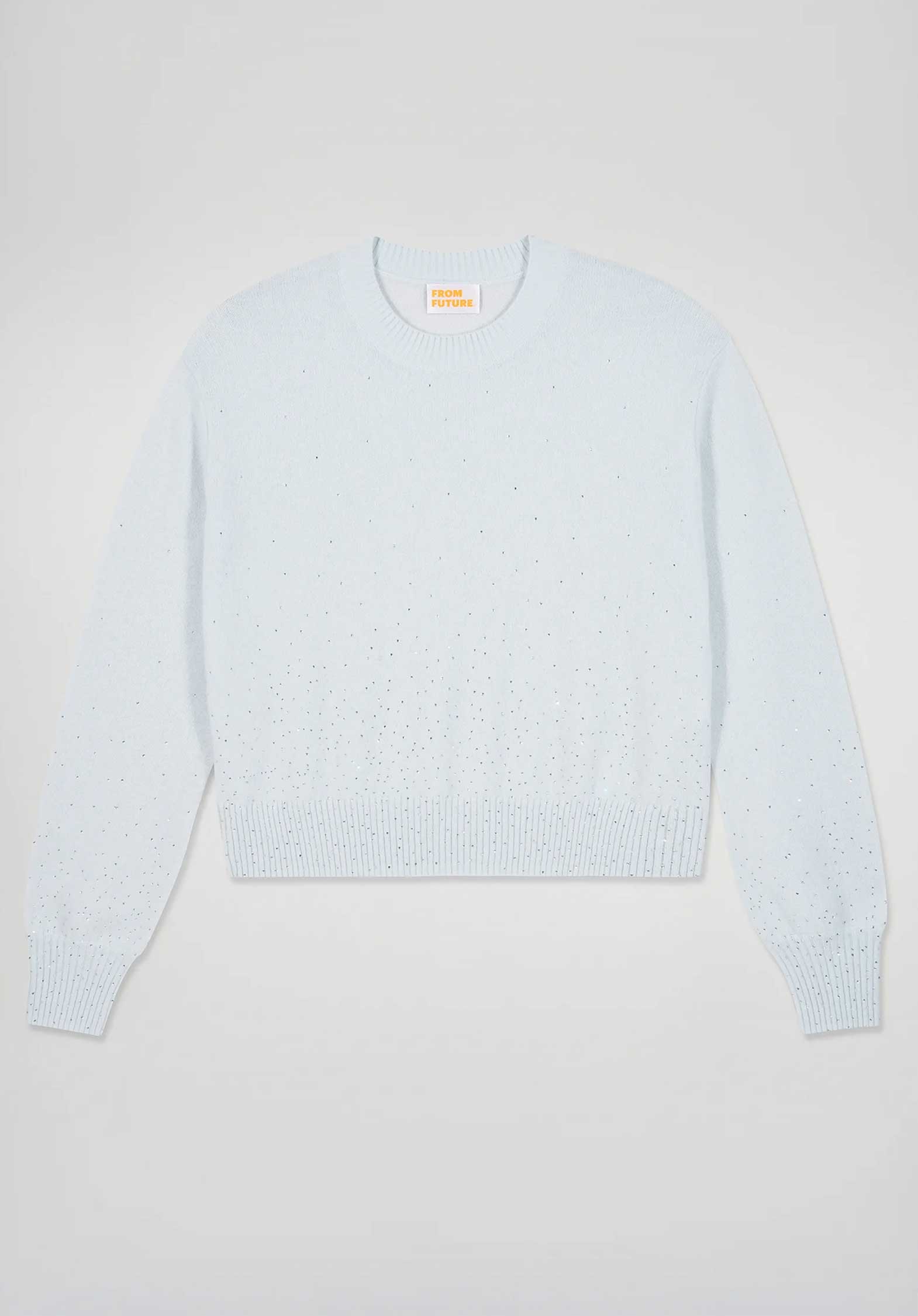 - Women's GCS certified 2-ply cashmere sweater - Decorated with rhinestones - Round neck - Long sleeves - Short, regular cut - Ribbed finishes - The Good Cashmere Standard (GCS) is an independent standard for more sustainable and responsible cashmere.It aims to improve the well-being of cashmere goats, conditions them