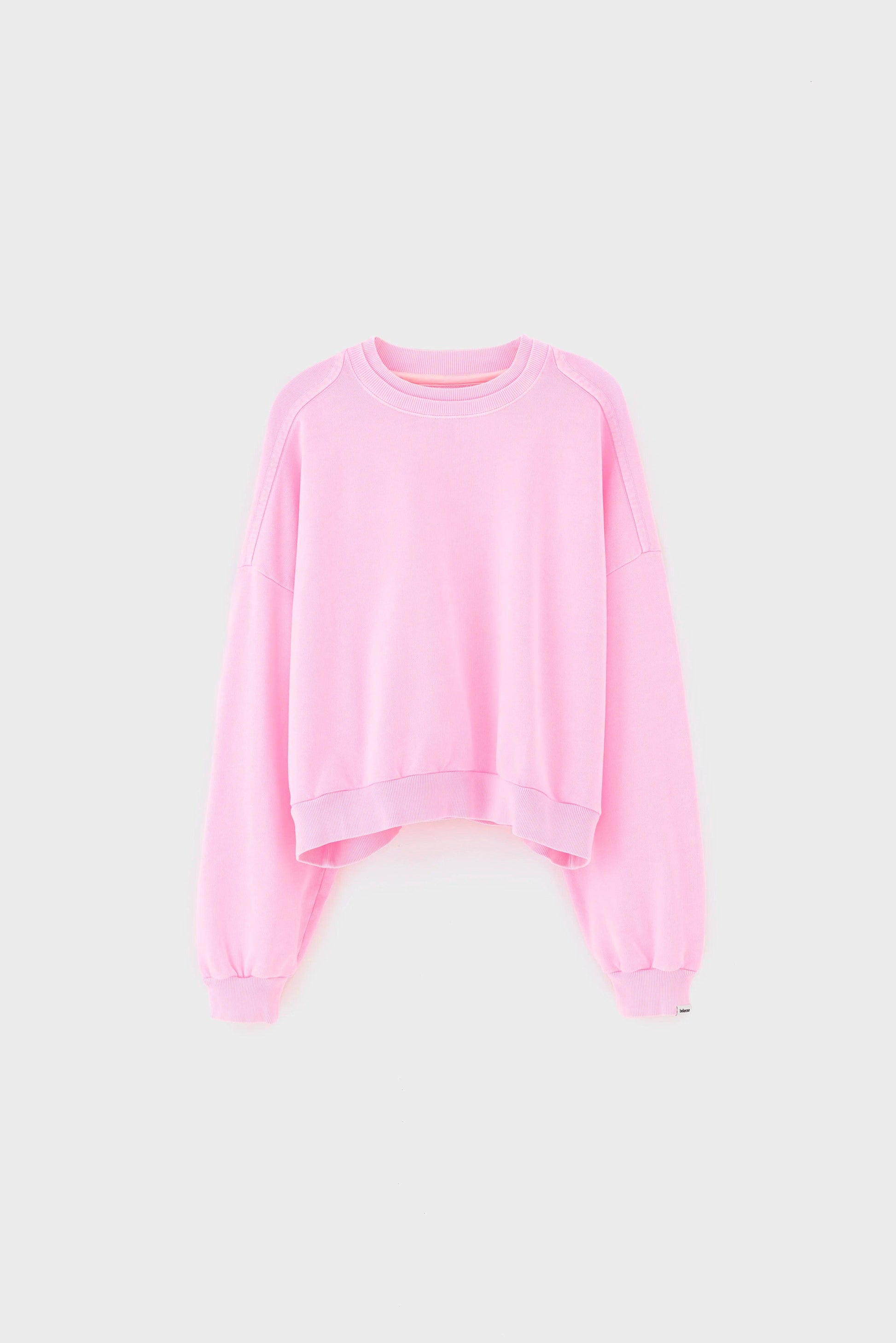 Oversized crewneck sweatshirt in washed fluo pink cotton, with a cropped fit, ribbed trims and dropped shoulders.