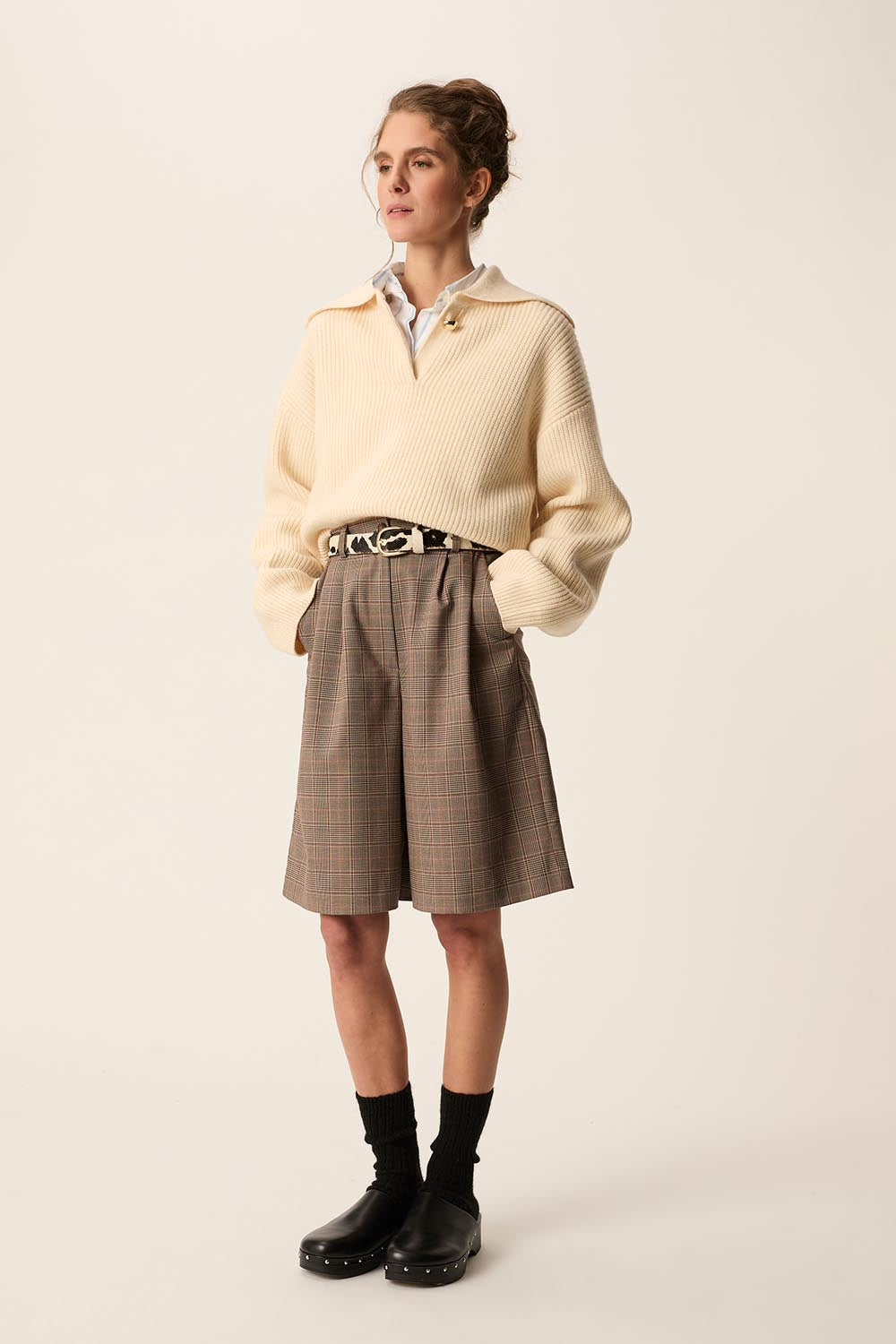 In a retro and versatile style, brought in costume with the coordinated jacket, a white shirt or a sweater, the multifacete style of Bermuda Tifaro will be essential in all the looks this season.
