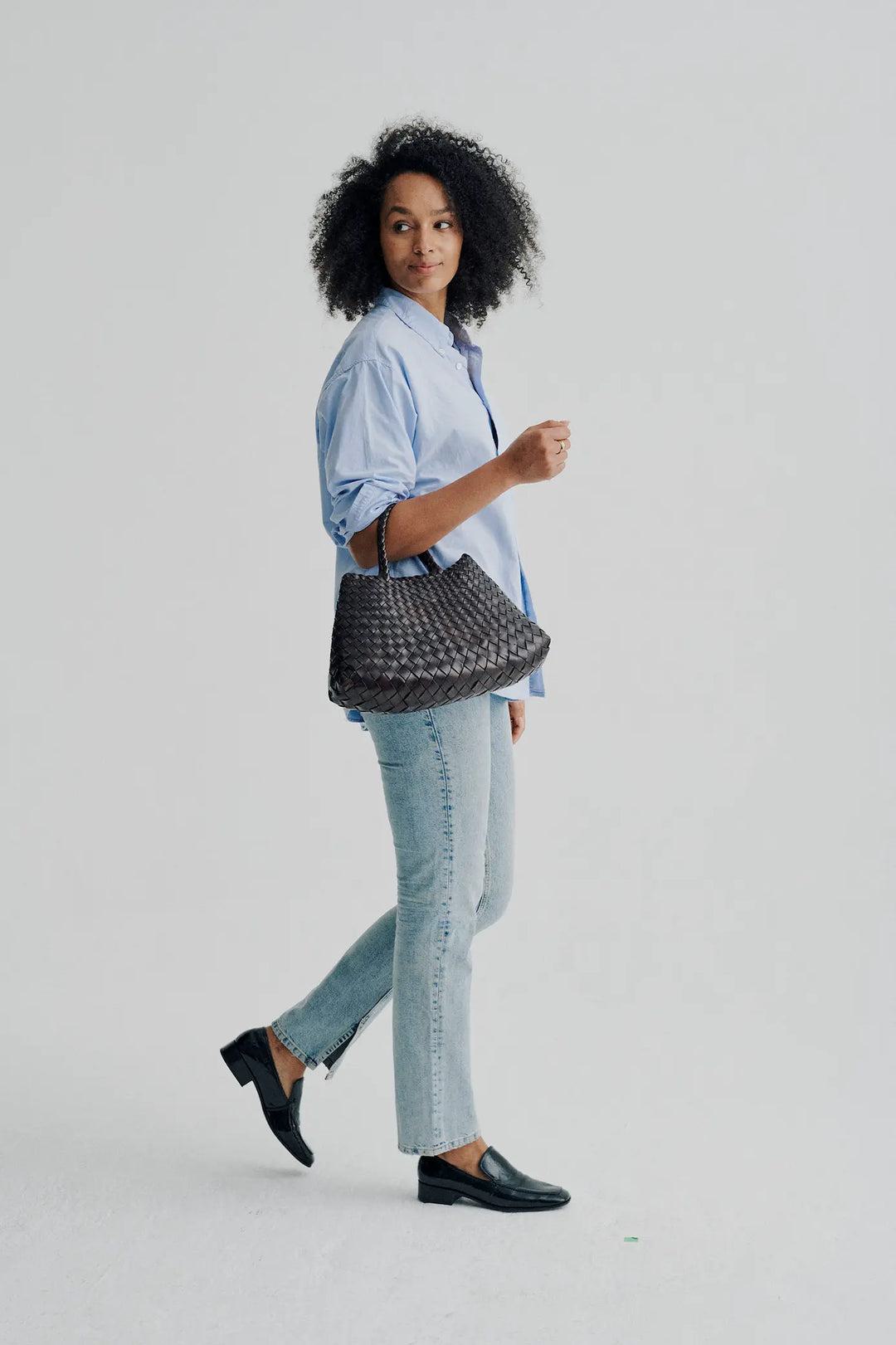 OUR SANTA CROCE BAG is formed of irregular leather weaving straps that typing the brim, creating a practical yet elegant shape thats perfect for running the city - tuking your outfit from day to night.Remaining *1 to Traditional Basket Weaving Techniques, The Santa Croce Comes Unlined and has an open top.