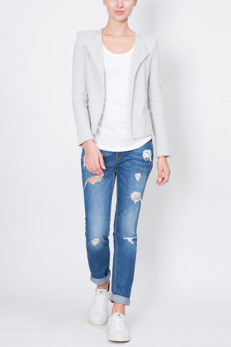 Majestic's comfy patterned jacket is crafted from cotton-cashmere blend. It has a large lapel and two single jet pockets.
