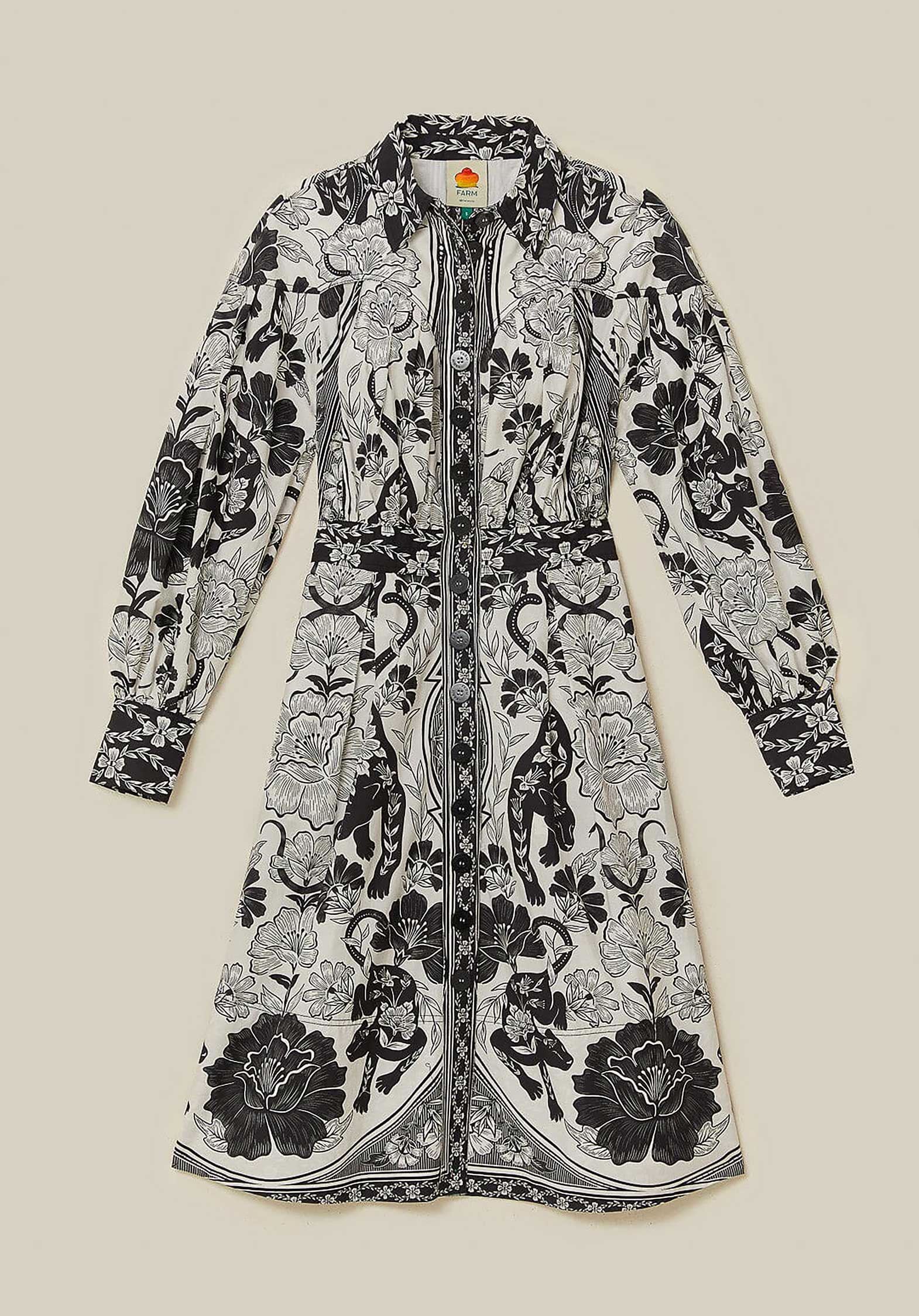 Embrace the Off-White Flower Leopards Collared Midi Dress, a mesmerizing blend of elegance and whimsy. This dress dances with playful leopards amidst blooming flowers on a canvas of off-white, edged by a distinctive black print that accentuates its unique silhouette. The collar neckline adds a touch of sophistication, while the cinched waist and fluid skirt create an effortlessly chic profile. A truly enchanting piece to treasure in your collection.Composition 100% COTTONCare Instructions MACHINE WASH, GENTLE CYCLE, DO NOT BLEACH, DO NOT TUMBLE DRY, LINE DRYING, IRON AT LOW HEAT, DRY CLEAN WITH ANY SOLVENT EXCEPT TRICHLOROETHYLENESize and Fit