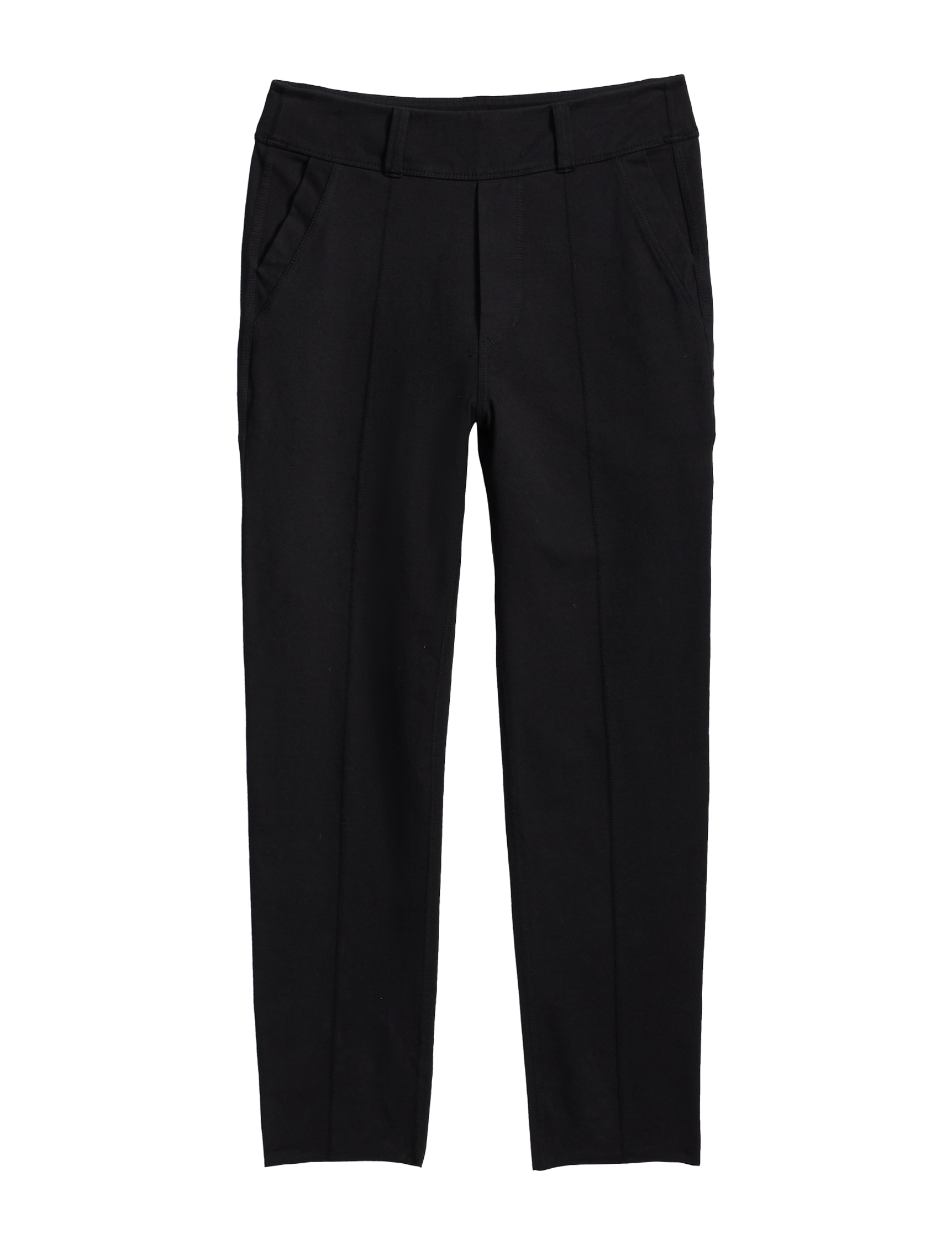 Cropped hand-cut raw hemPull-on style with faux flyDelicate front seam on legs, front slant pockets and faux back pockets create a flatteringly smooth silhouetteMid-rise fitSimone is 5'8" wearing a size STurn this garment inside out, machine wash on cold with like colors, and tumble dry on lowStyle Code: LAB600-BLK
