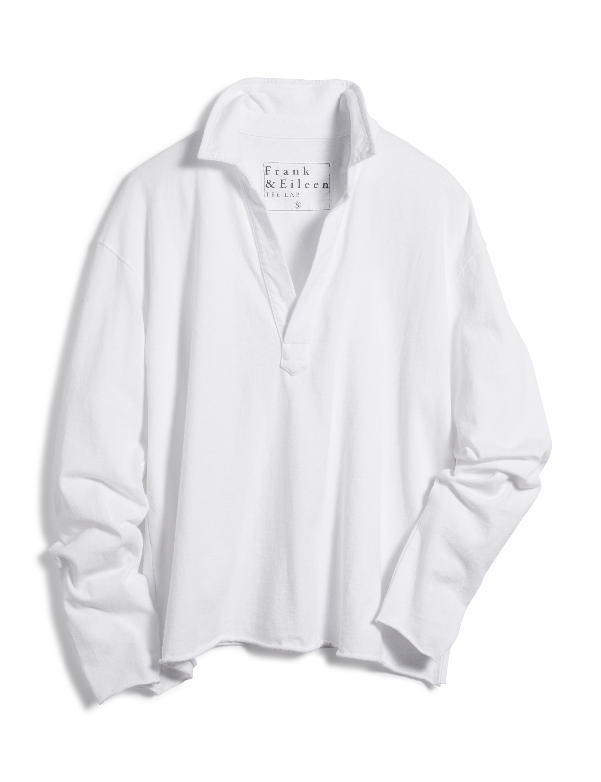 Slightly cropped hand-cut raw hem and edgesCollared V necklineLong sleevesMilan is 5'9" with a 33" bust wearing a size STurn this garment inside out, machine wash on cold with like colors, and tumble dry on lowStyle Code: LAB510HJ-WHT