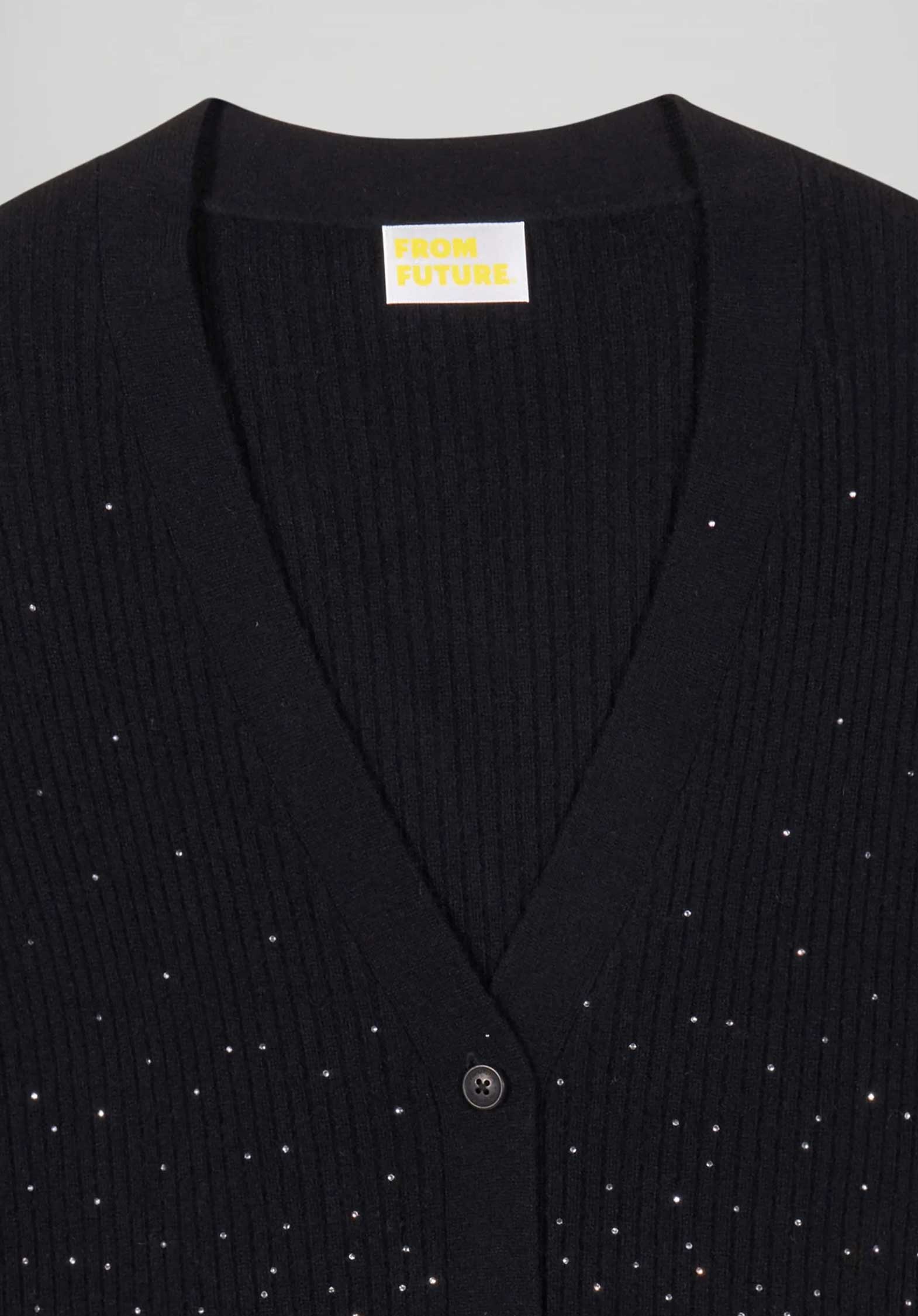 - Women's GCS certified 2-ply cashmere cardigan - All-over rhinestones - Long sleeves - Button fastening - Short, regular cut - The Good Cashmere Standard (GCS) is an independent standard for more sustainable and responsible cashmere.It aims to improve the welfare of cashmere goats, the conditions