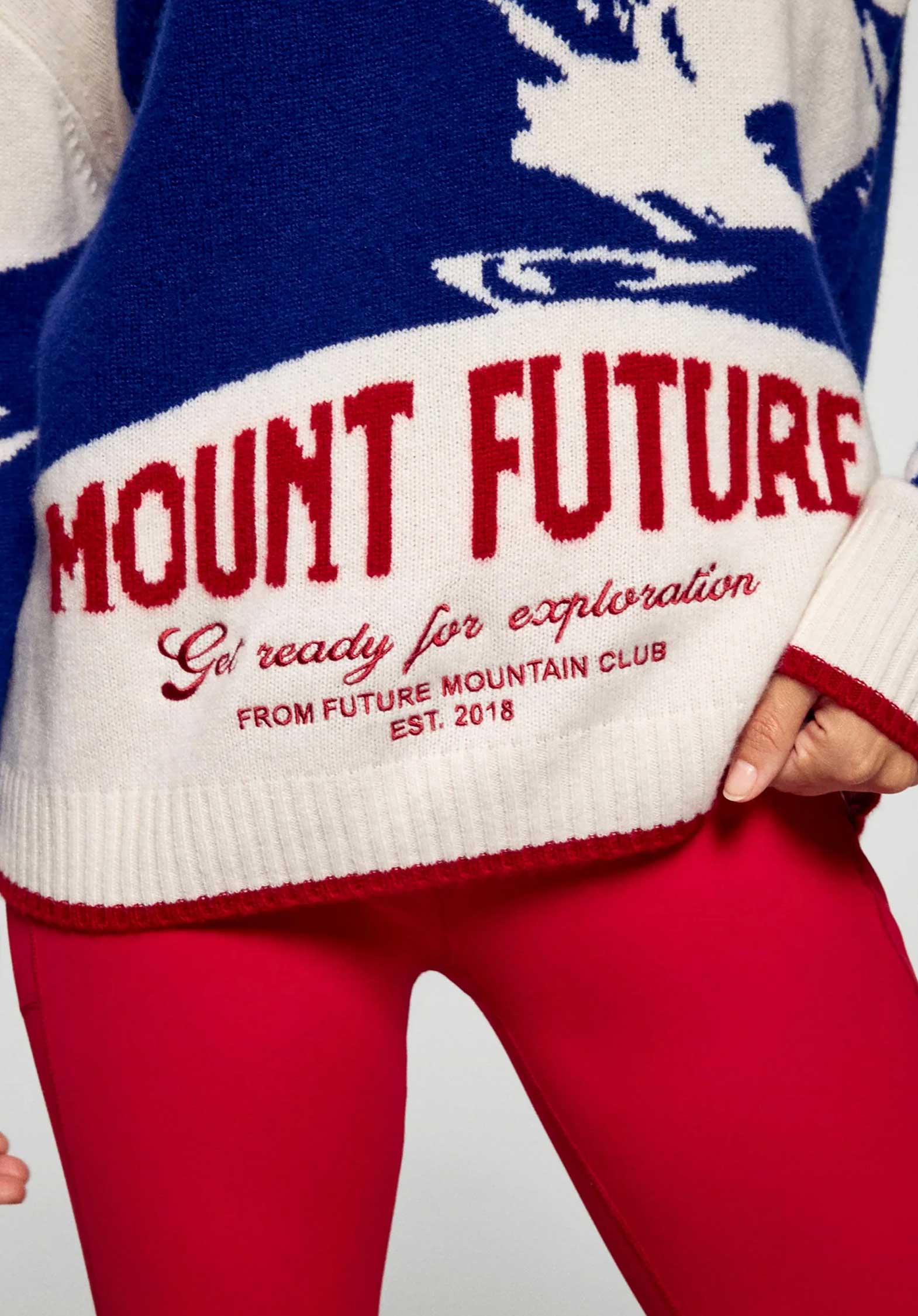 100% cashmere sweater, with the Mount Future graphic design, signature of the collection.Its oversized cut and soft knit provide warmth and comfort.- Women's GCS certified 100% 4-ply cashmere sweater - Round neck - Long sleeves - Oversized cut - Regular length - The Good Cashmere Standard (GCS) is an international standard