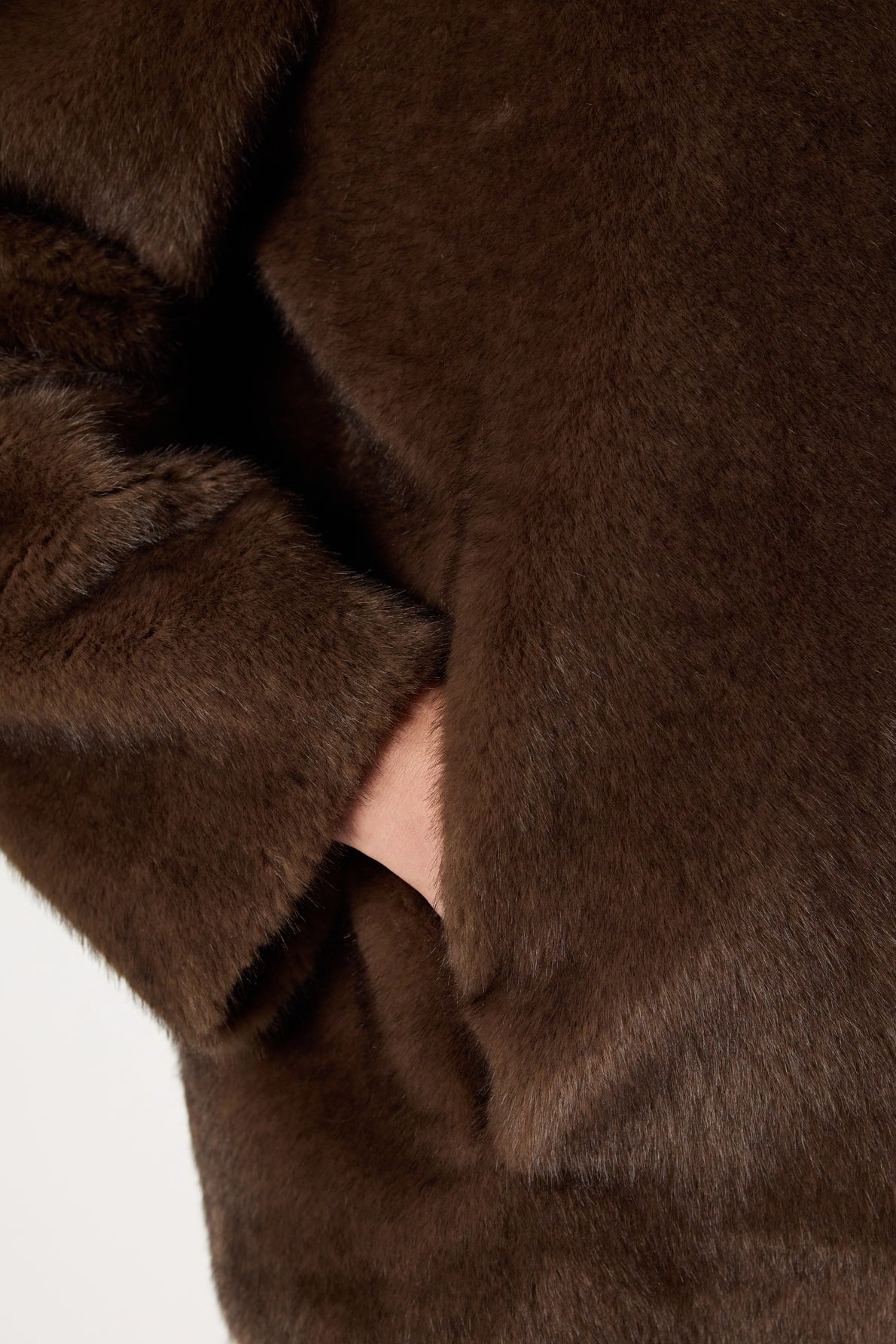 VERY SOFT FEEL FAUX FUR SHORT COAT FOR WARMTH, COMFORT AND STYLE. CAN BE WORN WITH CLASSIC OUTFITS (SUITS), OR WITH JEANS IN A CASUAL SPIRIT.