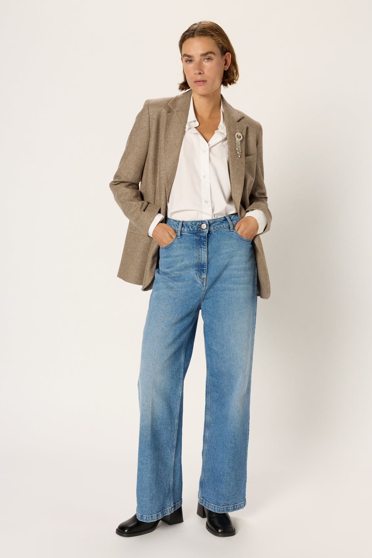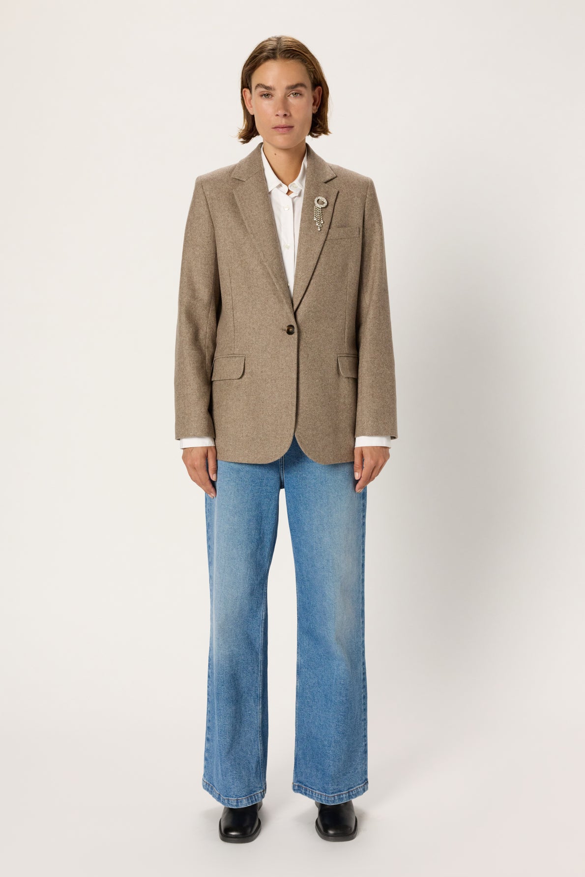 A HERRINGBONE STRAIGHT JACKET, A CLASSIC PIECE ESSENTIAL FOR A WINTER WARDROBE. MADE FROM A WOOL BLEND, IT WILL BE PERFECT WITH A SWEATER AT THE START OF THE SEASON AND BENEATH A COAT FOR THE DEPTHS OF WINTER. IT IS OFFERED IN BEIGE TO BRIGHTEN THE OUT