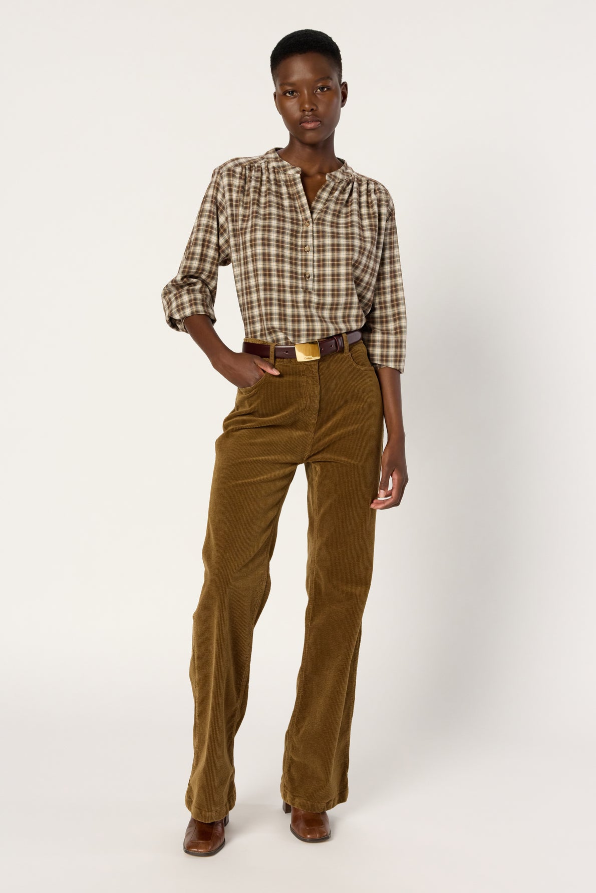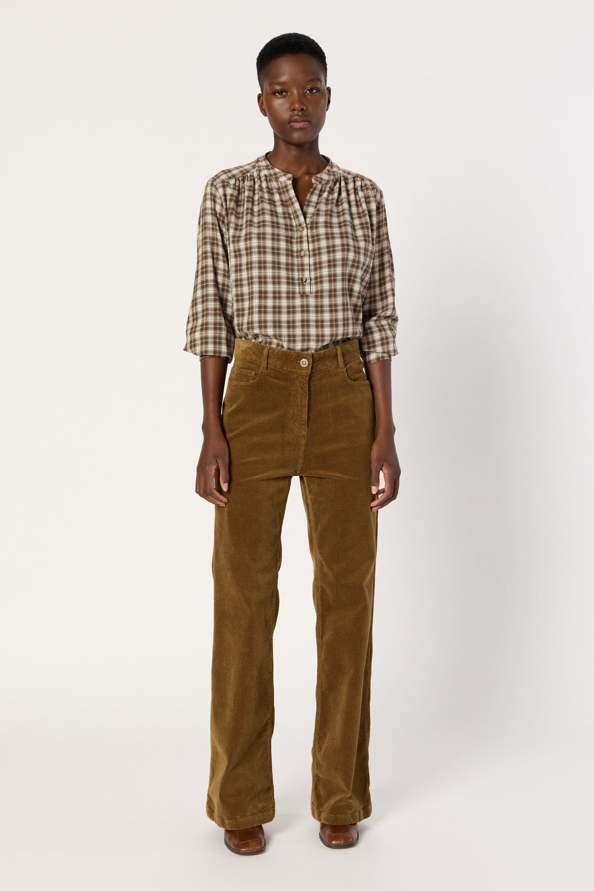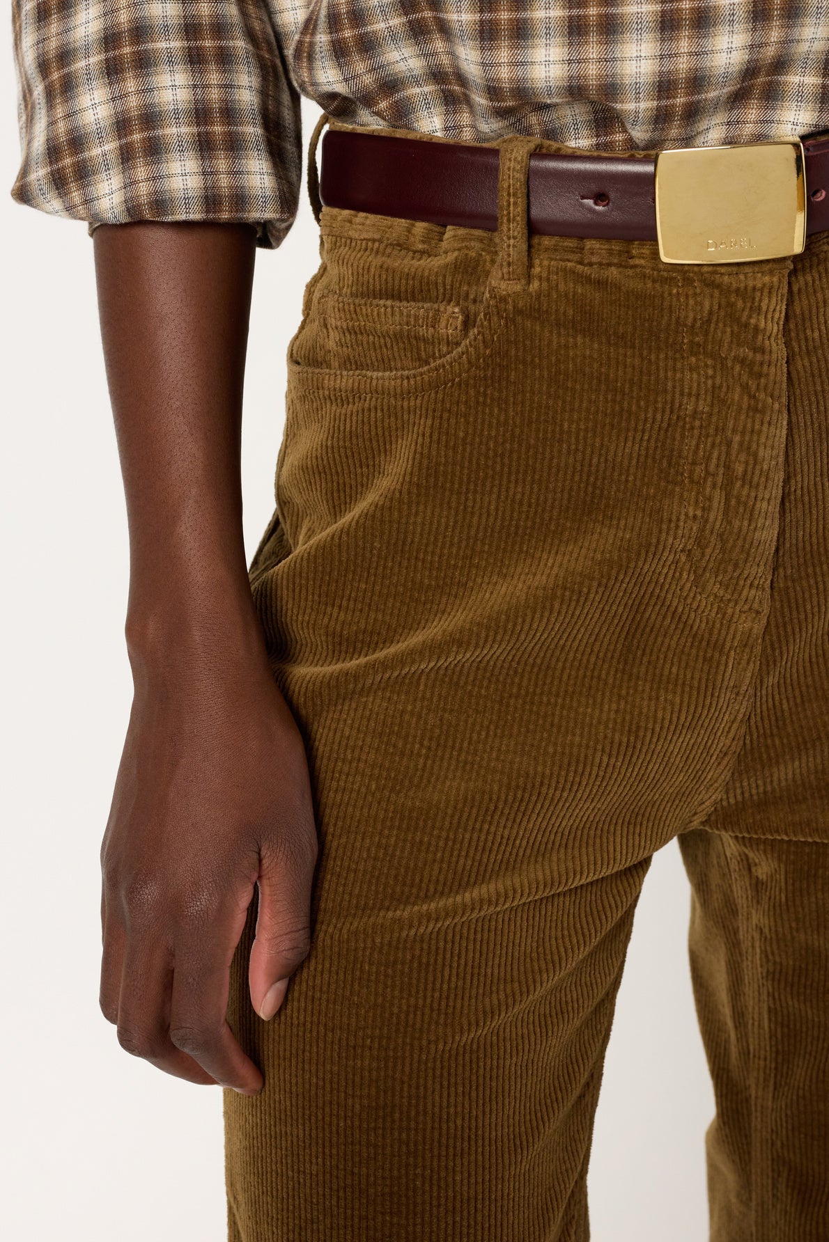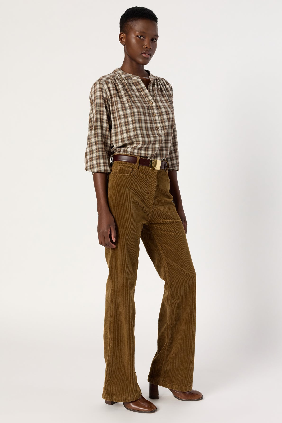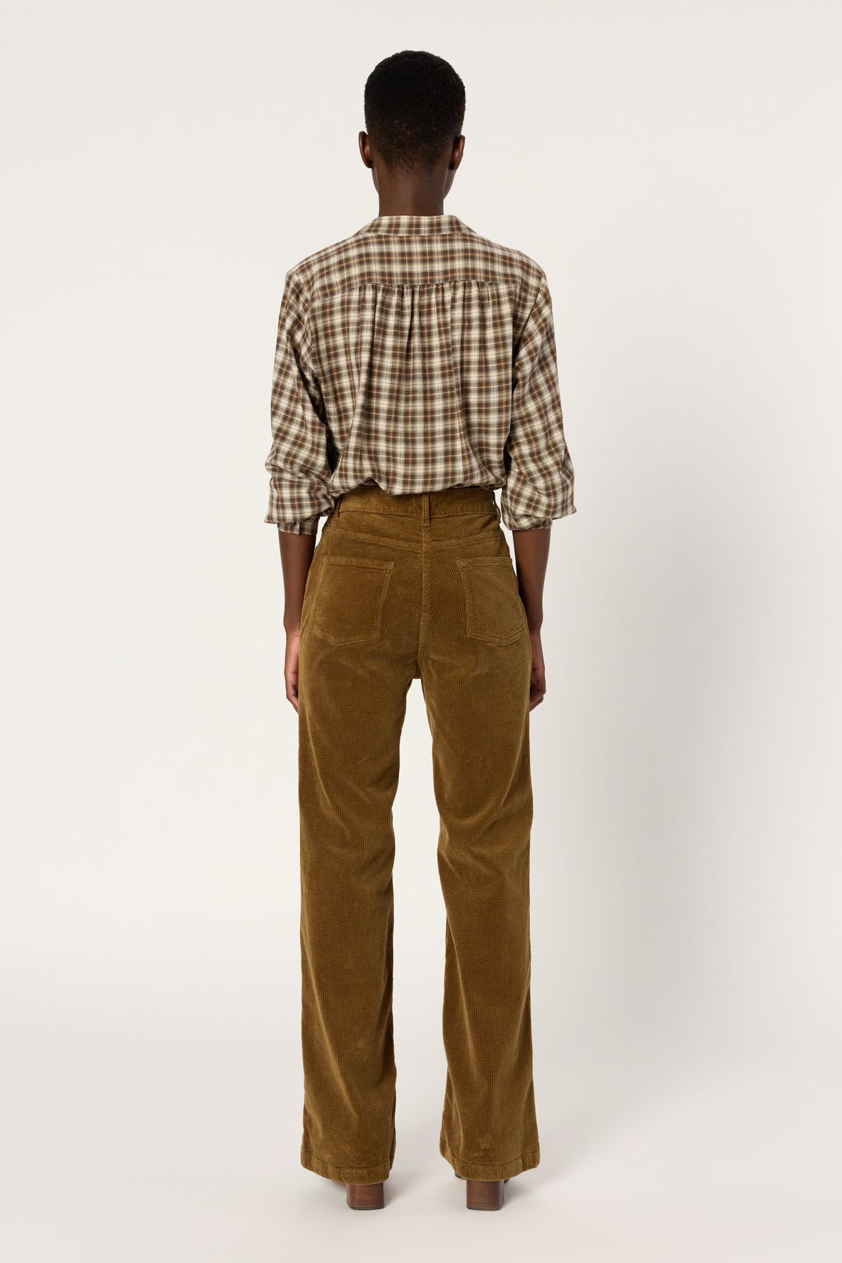 THE CHANTAL CAMEL NEEDLECORD PANTS ARE FLARED TO ADD A SUBTLE VINTAGE TOUCH TO ANY OUTFIT. MADE IN A STRETCH FABRIC FOR ADDED COMFORT.