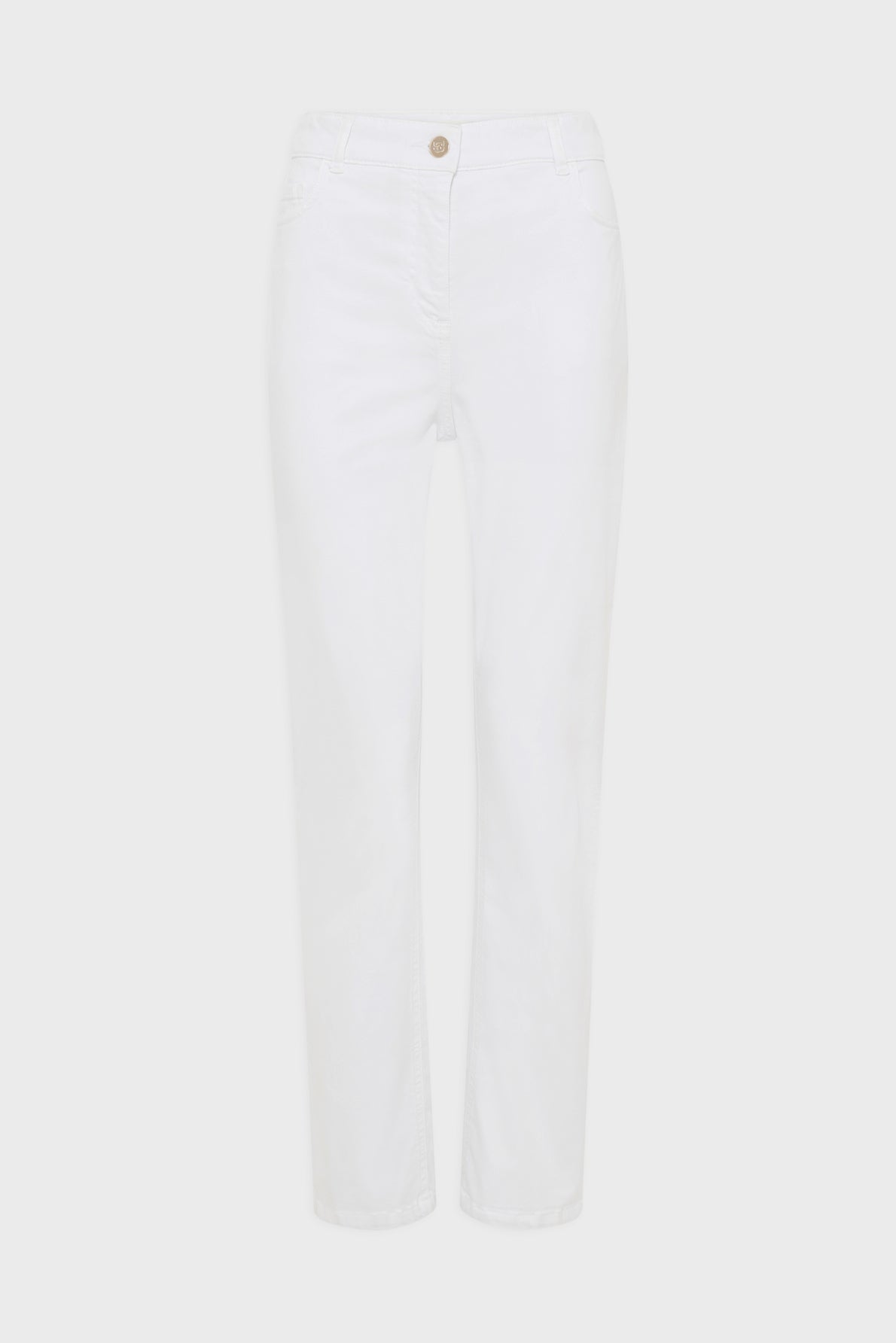 CRAFTED FROM STRETCH COTTON, THE ADELIA WHITE JEANS COMBINE STYLE AND COMFORT. ITS FIT IS TAILORED FOR A FEMININE AND CONTEMPORARY LOOK. IT CAN BE WORN WITH A FITTED TOP OR WITH A LOOSE SHIRT TO CREATE A CONTRAST IN VOLUMES.