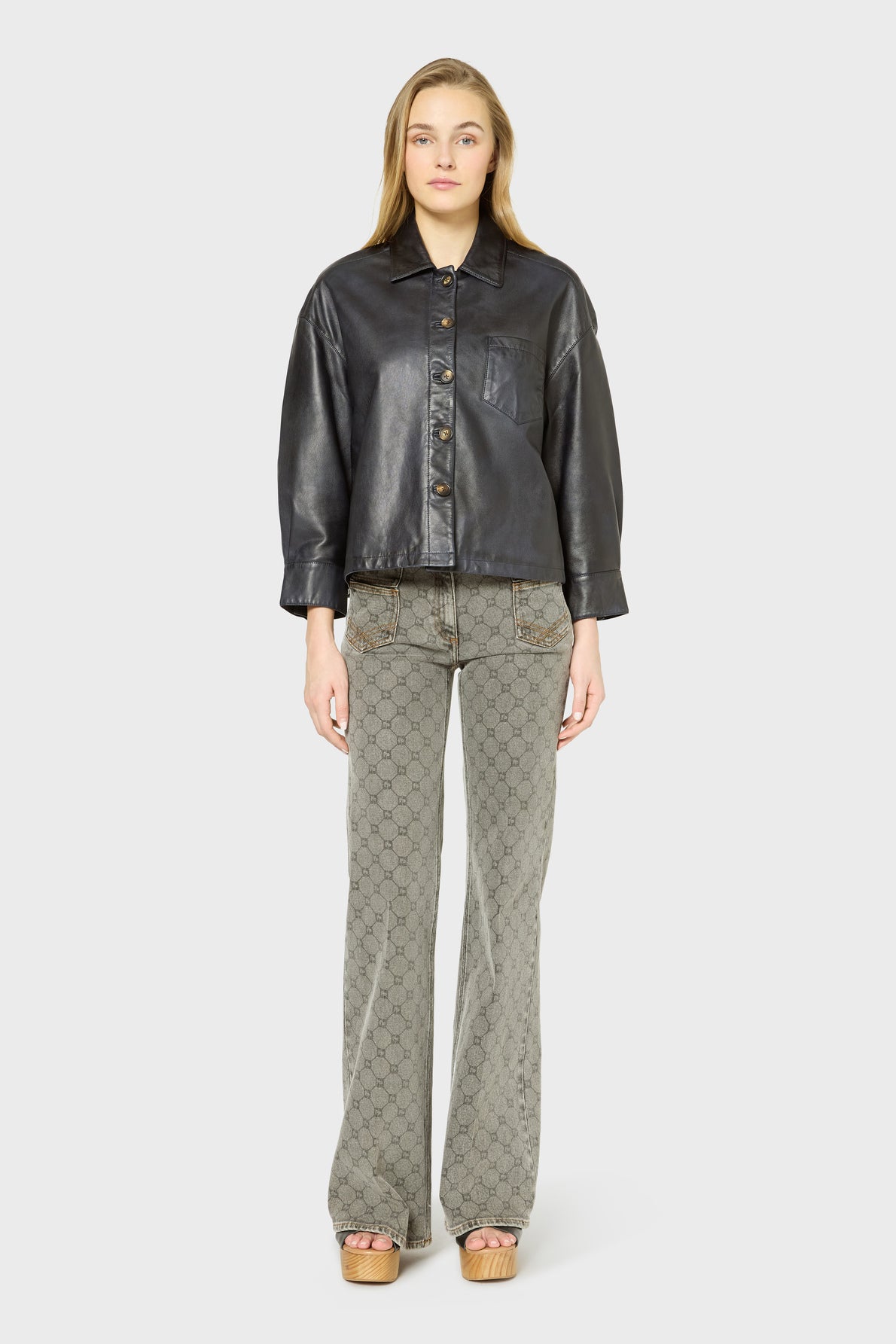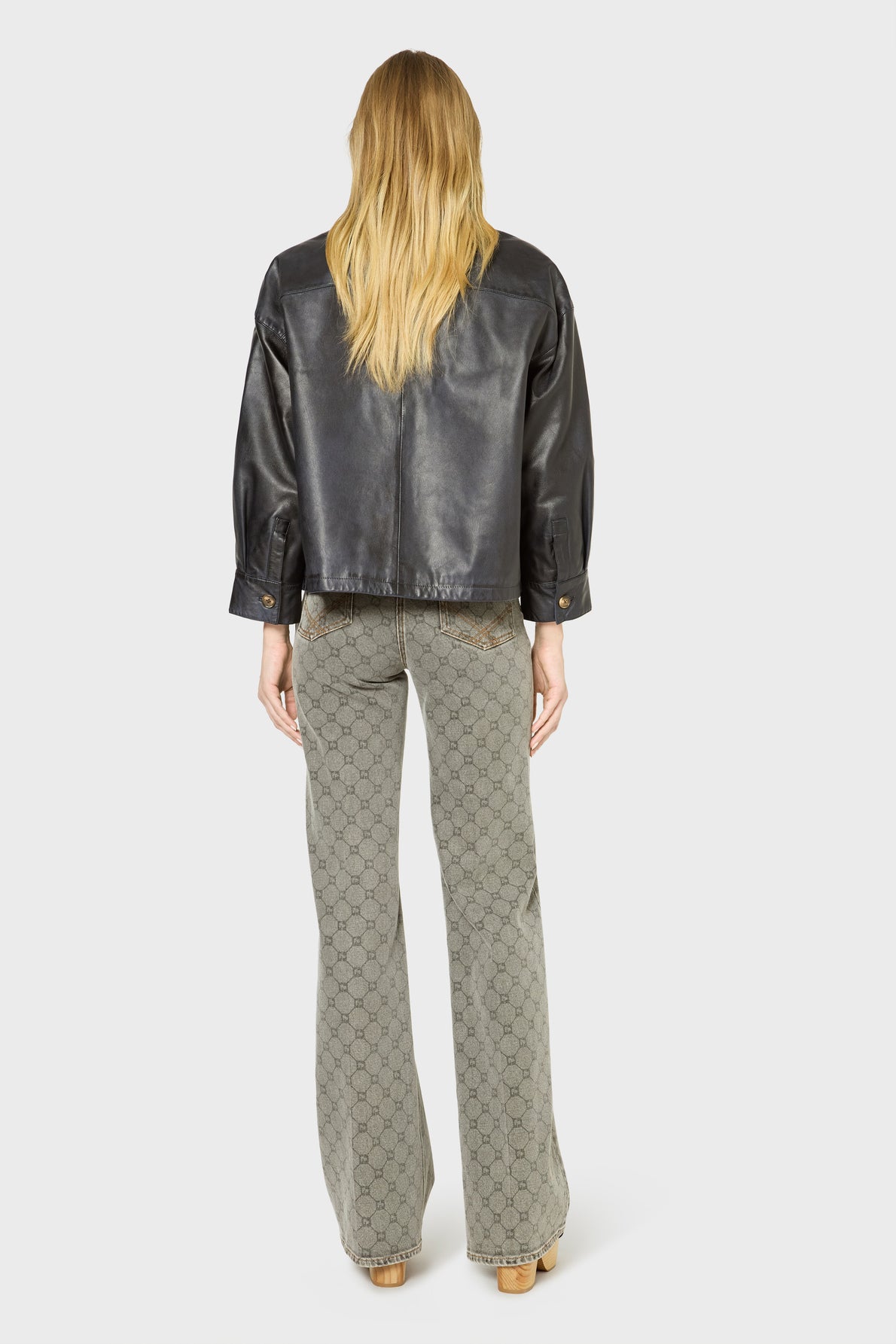 SHIRT-STYLE, OVERSIZED JACKET IN DISTRESSED LEATHER. SMOOTH, SOFT LEATHER.