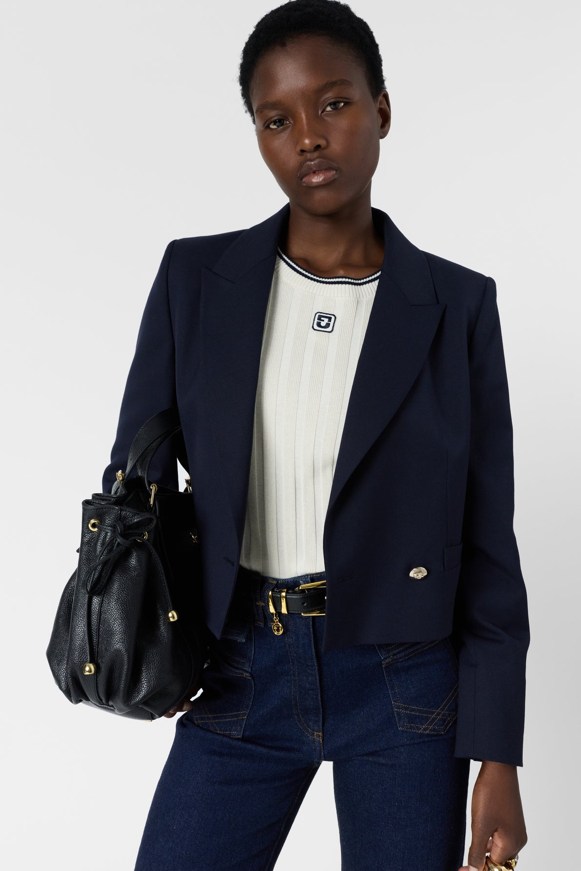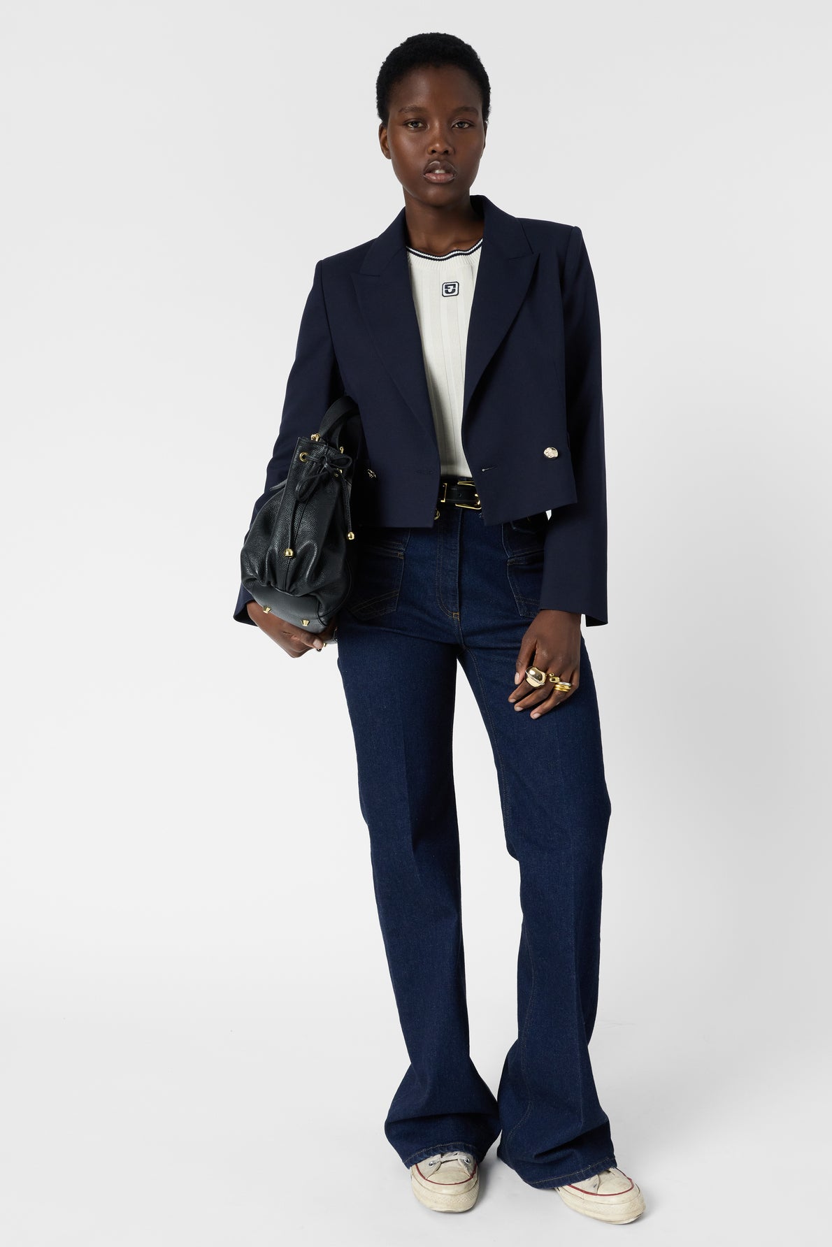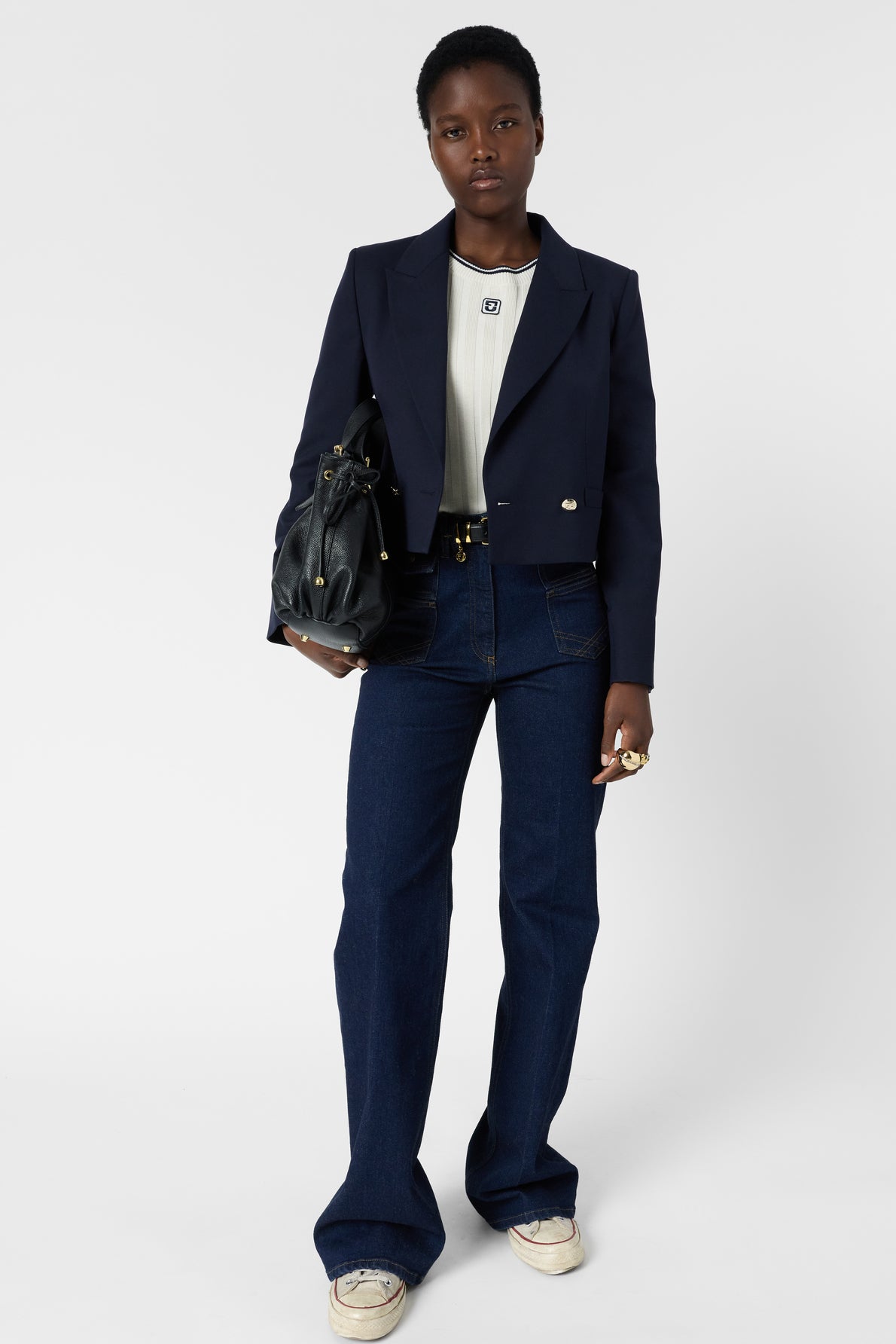THIS SHORT-SLEEVED SWEATER STANDS OUT THANKS TO ITS STRUCTURED RIBBED KNIT, WITH A TEXTURED EFFECT CREATED BY ALTERNATING KNIT AND PURL STITCHES. ITS ECRU COLOR IS ENHANCED BY CONTRASTING DETAILS ON THE COLLAR AND SLEEVES FOR A SPORTY-CHIC LOOK. IT IS