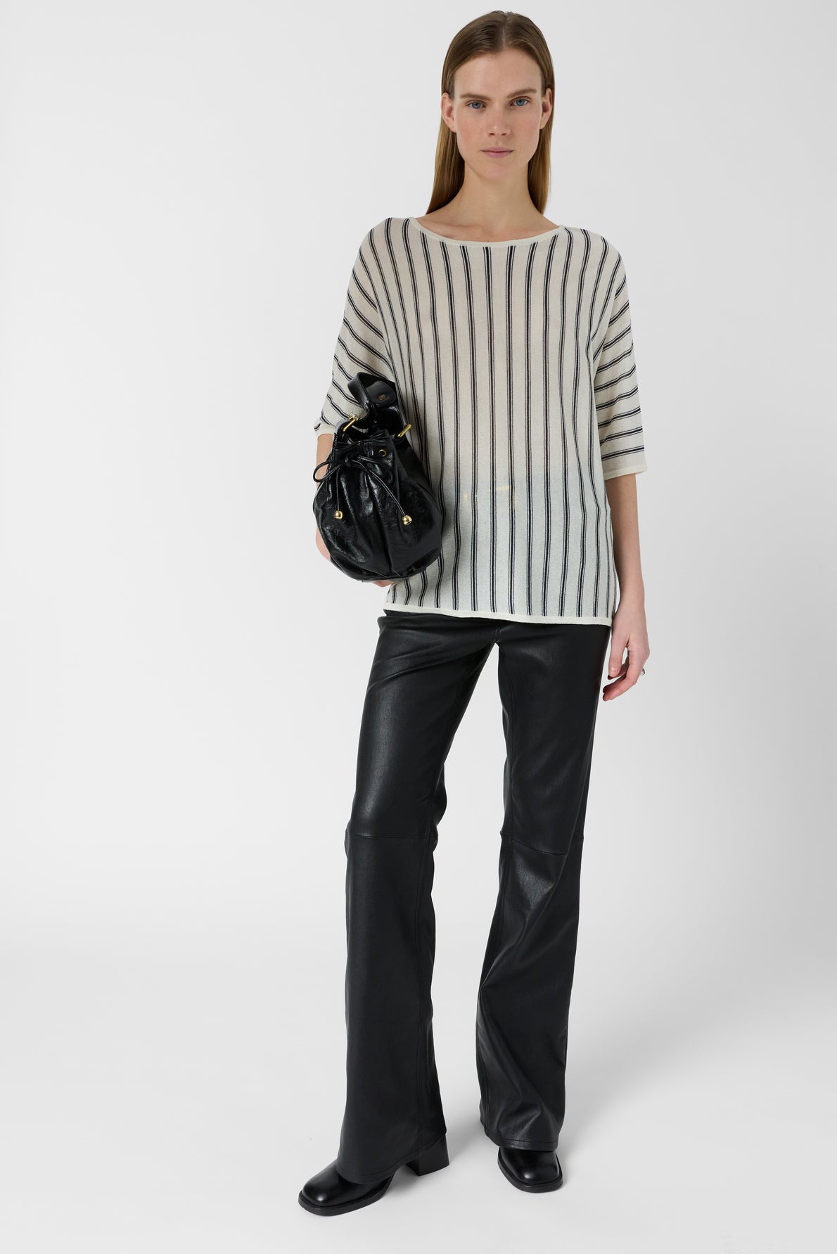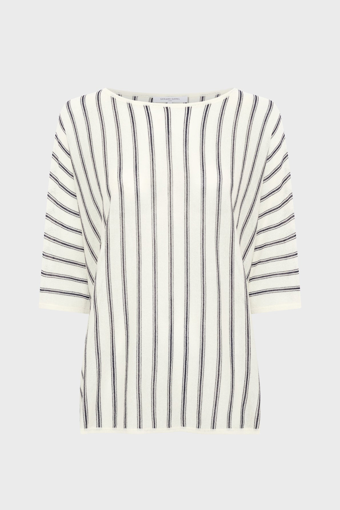 The Lysia sweater captivates with vertical stripes and an airy material that offers a subtle transparency. Its straight, fluid cut creates a clean, elegant drape that flatters every silhouette, while the open neckline adds a touch of contemporary chic. This sleeveless pullover vest is a graphic piece designed for daily wear, easy to layer over tees or blouses for instant polish.