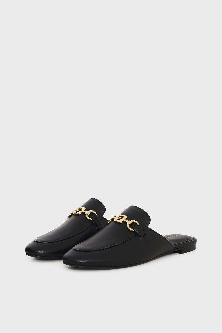 SLIPPERS IN BLACK LEATHER ADORNED WITH GOLD BITS FOR A CHIC, CASUAL TOUCH TO ANY OUTFIT. 100% LEATHER.