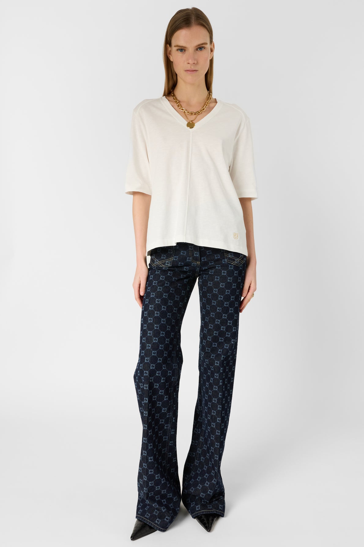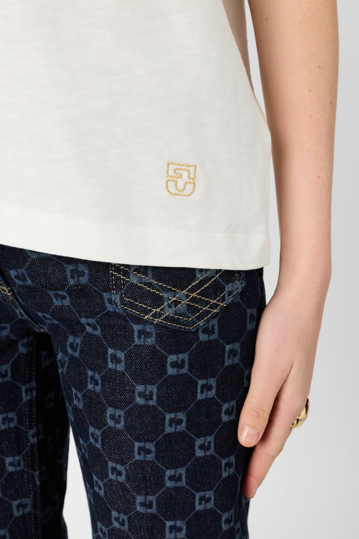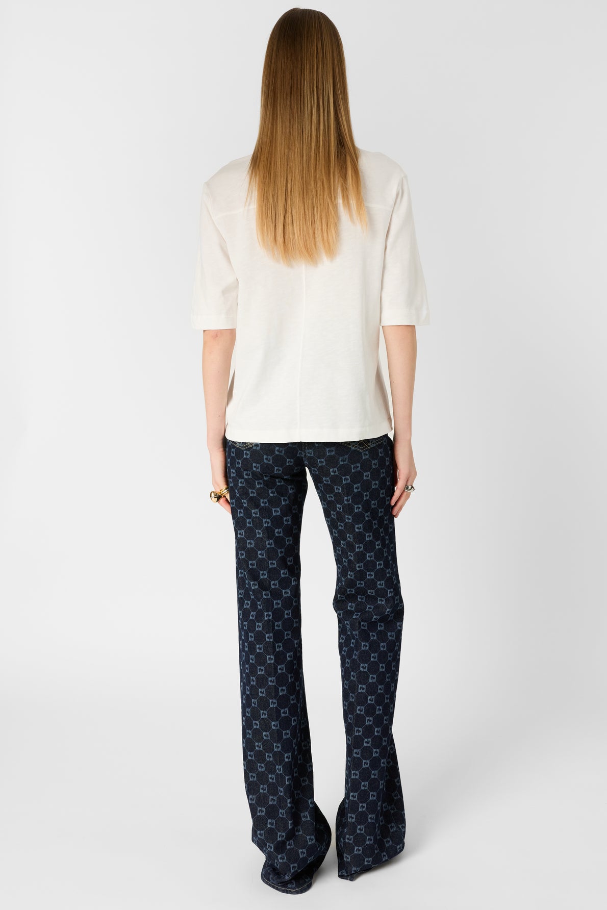 CRAFTED IN COTTON WITH STRUCTURE AND A SLIGHTLY SLUBBED APPEARANCE, THE MARISA T-SHIRT OFFERS A CUT STRUCTURED BY TONE-ON-TONE TOPSTITCHING. IT IS AVAILABLE IN A VERY PALE YELLOW TO BRIGHTEN THE OUTFIT.