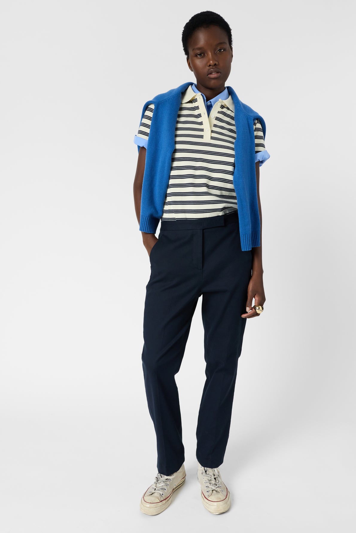 THE AURIA STRAIGHT PANTS ARE EQUIPPED WITH AN ELASTICIZED BACK FOR GREATER COMFORT. CRAFTED FROM COTTON, THEY ARE OFFERED IN NAVY BLUE, A TIMELESS COLOR. THEY CAN BE WORN AS A SUIT OR CASUALLY WITH A T-SHIRT.