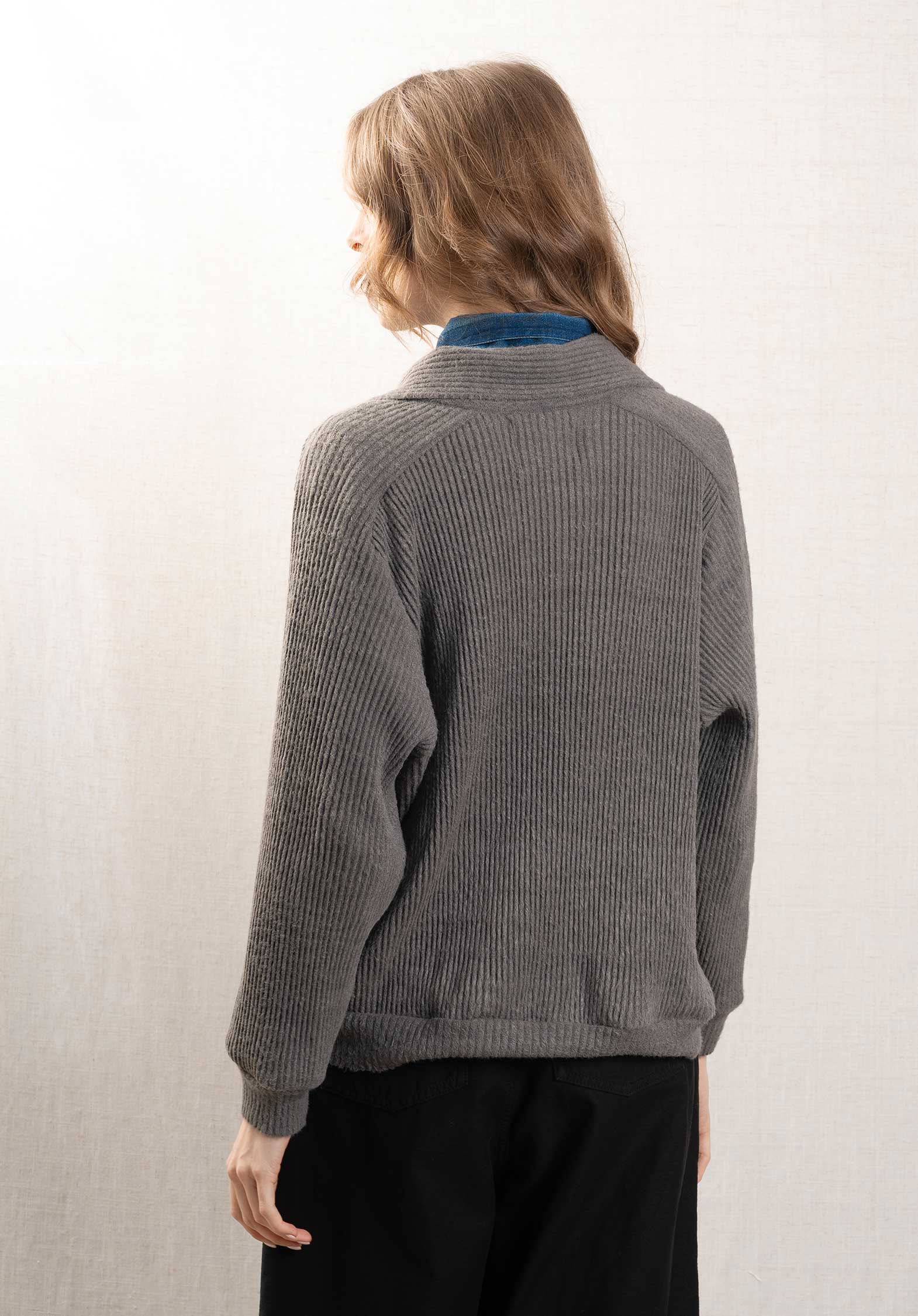 Knit Pleated Cardigan Gd254 Dark-Grey