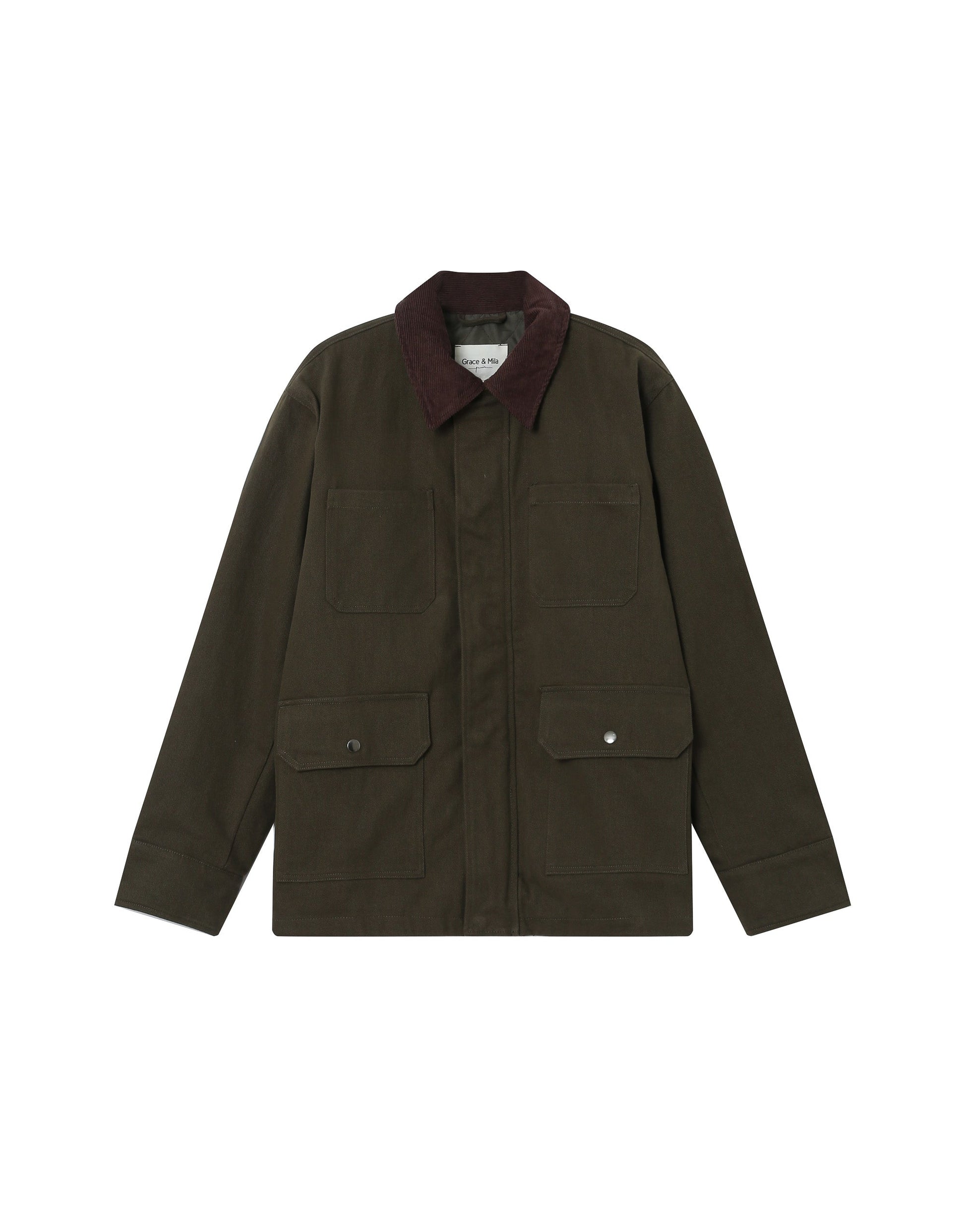Borrowed from the military cloakroom, the Soraya utility jacket is a functional and trendy room.The neutral shades, the structured cut and the neat finishes make the Soraya long sleeve jacket a worked and modern room.The model has a classic shirt collar, a zipper hidden on the front and a ribbed velvet neck.This part is made of 100% cotton.