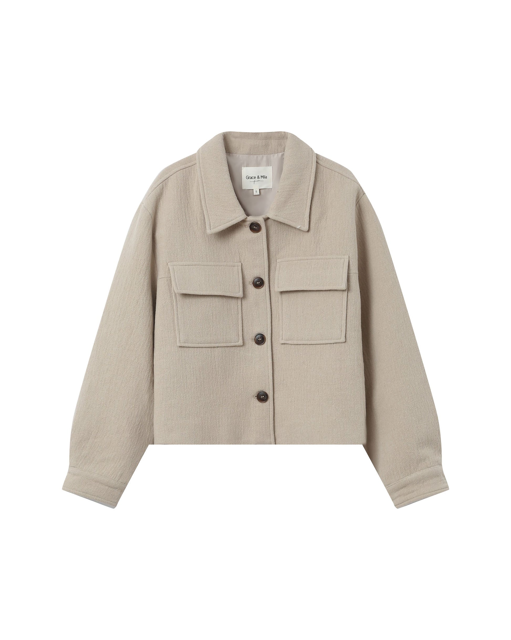 Italian Collar Wool Jacket The NOVEMBRE wool jacket is a fall/winter must-have. The straight cut and Italian collar give the NOVEMBRE long sleeve jacket a timeless fit that's perfect for any outfit. The model has two patch pockets on the chest and long sleeves with buttoned cuffs.
