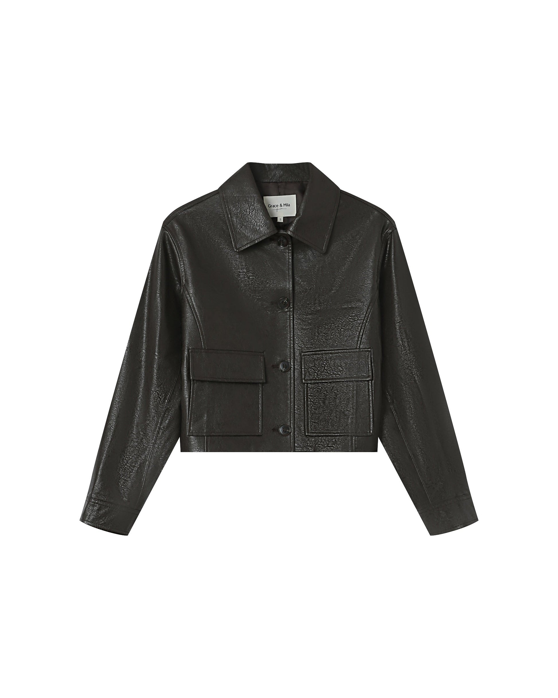 The Solange's imitation leather jacket is a must in the fall/winter locker room.Its straight cut and neat finishes draw a structured silhouette with modern elegance.The right jacket Solange has long sleeves with buttoned cuffs and a buttoned opening on the front.The model is doubled.
