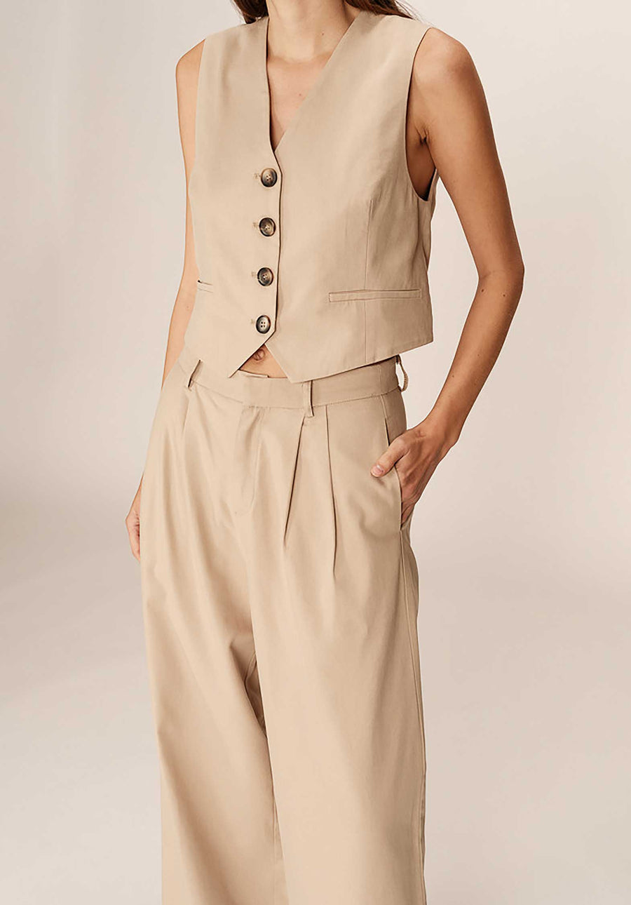The Peter tailor pants is an elegant and sophisticated part of the collection.With passers -by at the waist, the high waist and the folds on the front, the piece revisits the classic codes of tailoring.Peter fold pants have a straight cut and wide legs that sublimate the female curves.The model has a zipped closure with hook at the waist, Italian pockets and 0 piped pockets in the back.Made of natural fibers, the Peter pants joins our range of natural fibers 'a touch of green'.