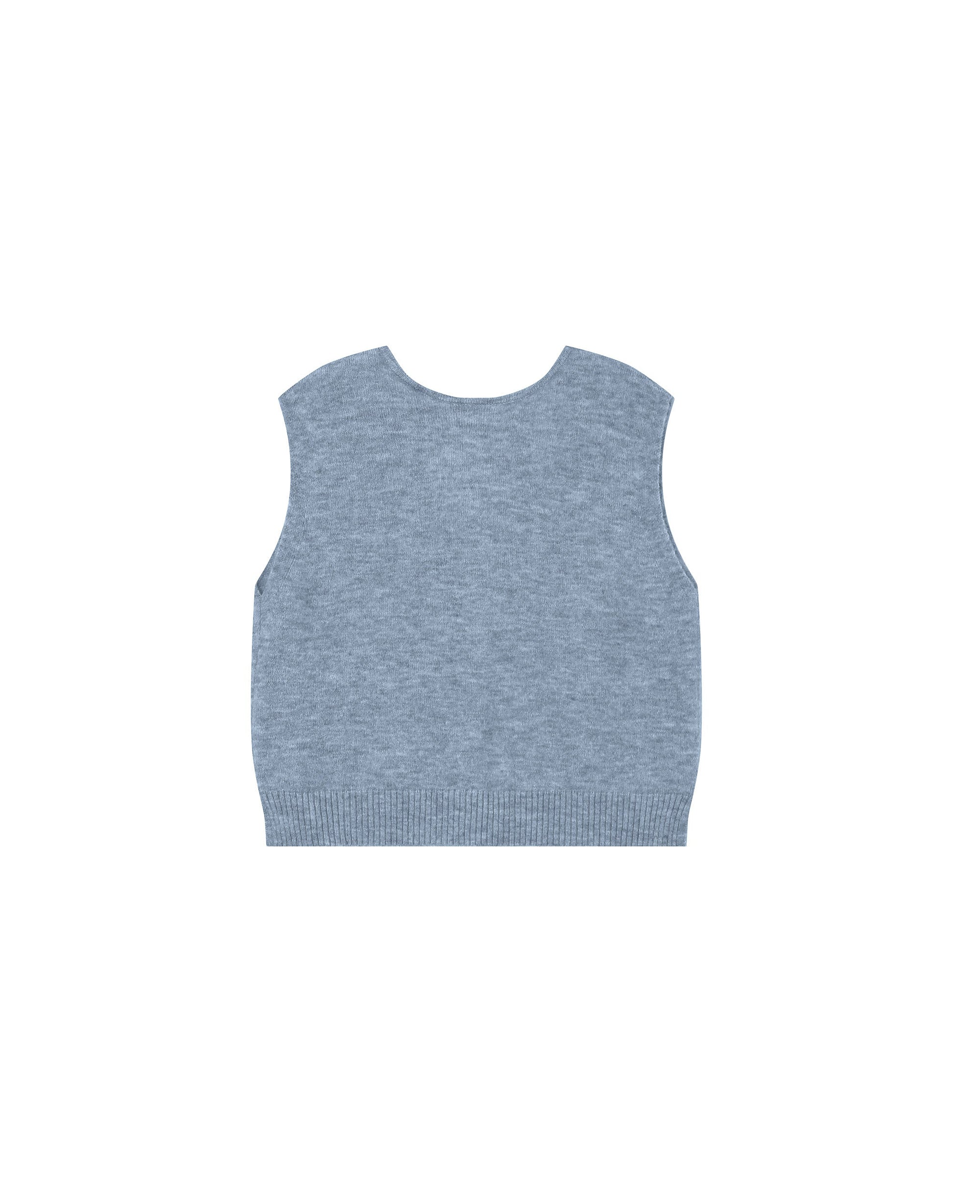 Made in a woolen and Mohair thread, the Santa sleeveless cardigan is a hot room that offers a modern and trendy look.The cardigan has neat finishes such as buttoned opening on the front and slots on the sides, which make it a worked model.The woolen cardigan and Mohair Santa is a must for the season.